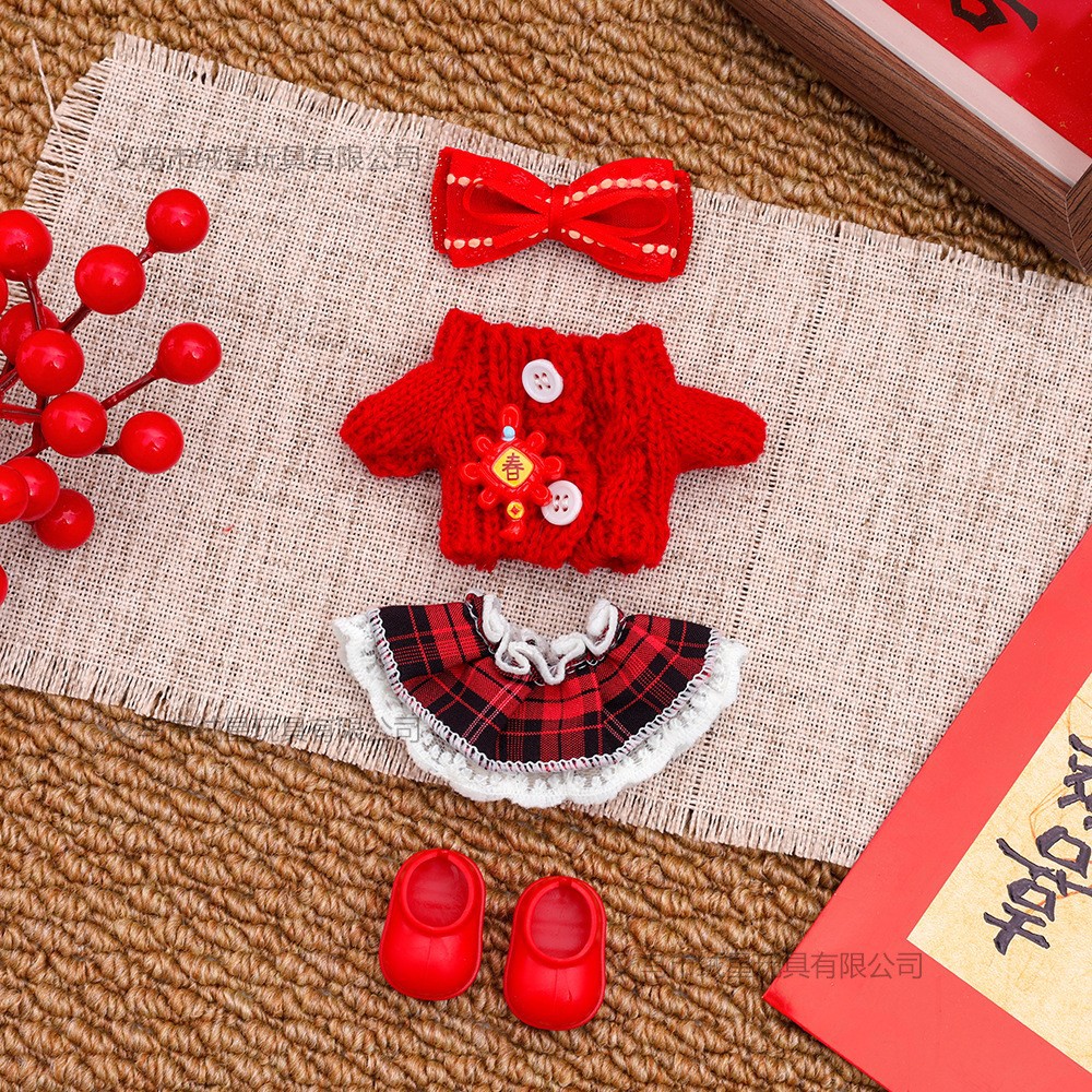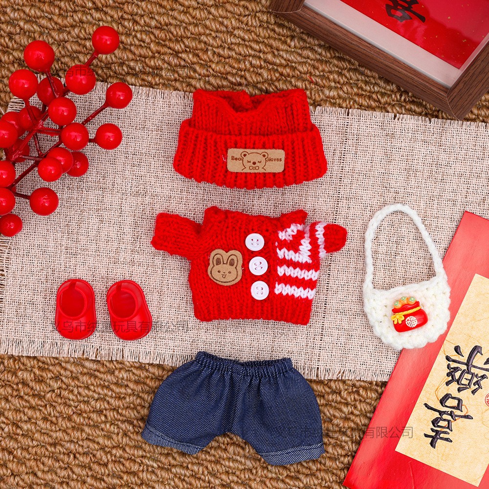 • RX274 컬러풀한 레드 니트 탑 + 레드 멜빵 + 레드 슈즈 + 레드 헤드폰 (인형은 포함되지 않음)
