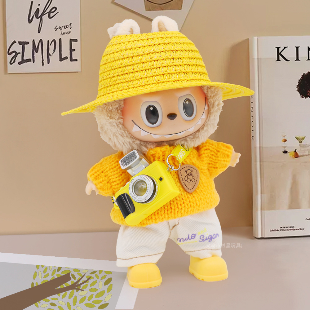 • RX262 노란색 귀여운 작업복 + 노란색 줄무늬 T + 주황색 신발 + 주황색 헤드폰 + 노란색 만화 카메라(인형은 포함되지 않음)