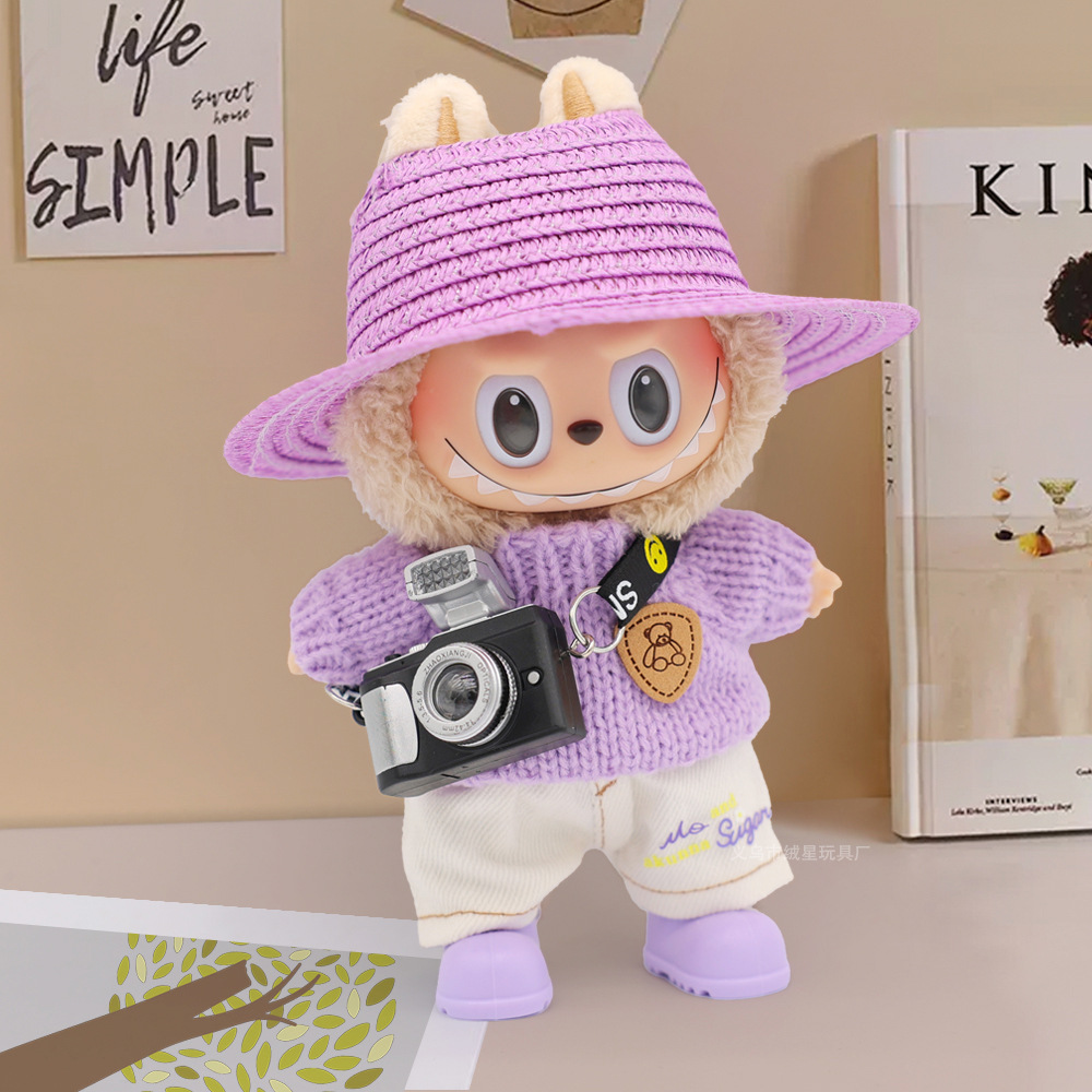 • RX262 버건디 귀여운 작업복 + 녹색과 흰색 T + 보라색 신발 + 보라색 헤드폰 + 보라색 만화 카메라 (인형은 포함되지 않음)
