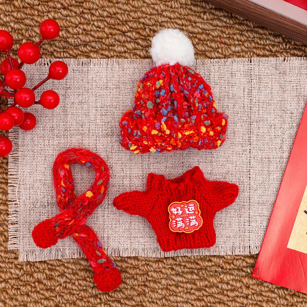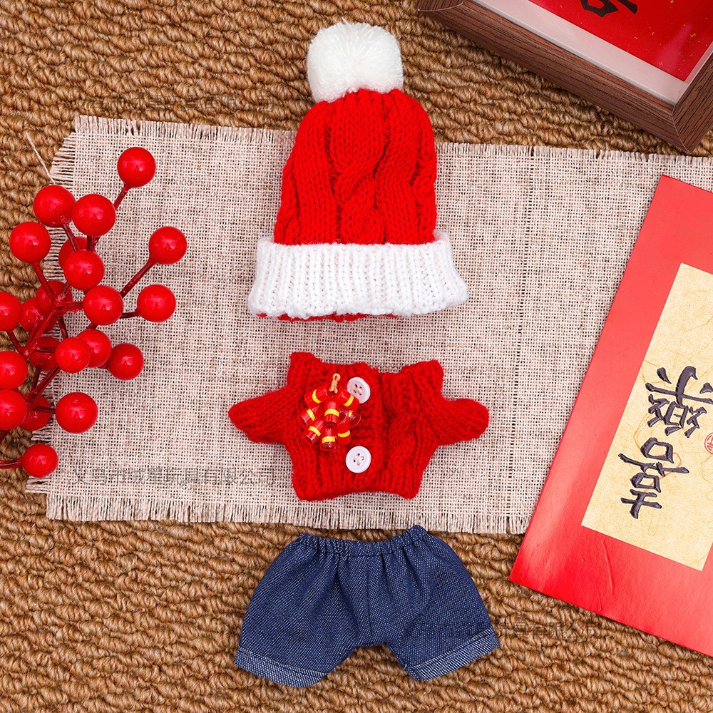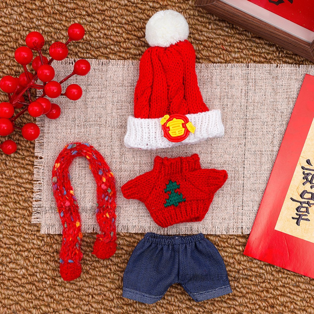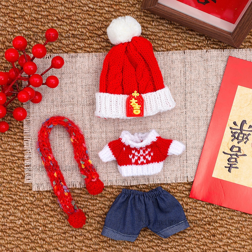 • RX298 크리스마스 세트 [크리스마스 레드 롱 모자 + 레드 & 화이트 스웨터 + 레드 레인보우 머플러 3종 세트 (인형 미포함)]