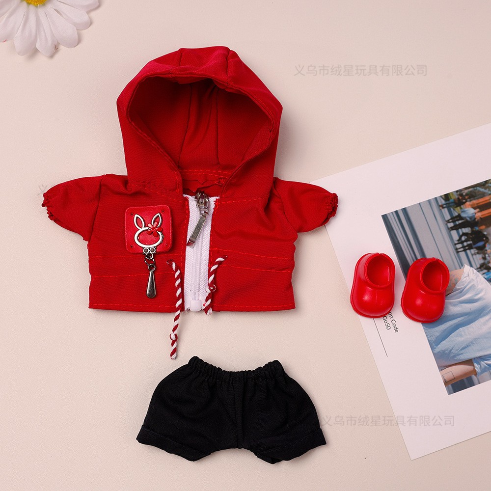 • RX258 빨간색 만화 T+흰색 바지+검은색 신발+빨간색 뾰족한 모자+검은색 헤드폰(인형은 포함되지 않음)