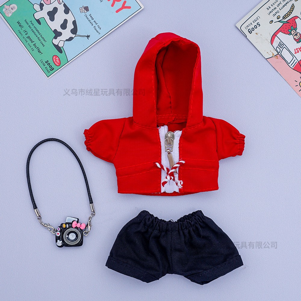 • RX259 흰색 만화 T + 검정색 캐주얼 바지 + 흰색 신발 + 검정색 만화 카메라 + 검정색 안경 (인형은 포함되지 않음)