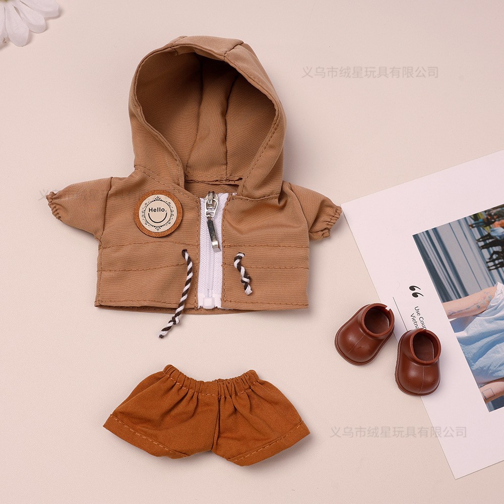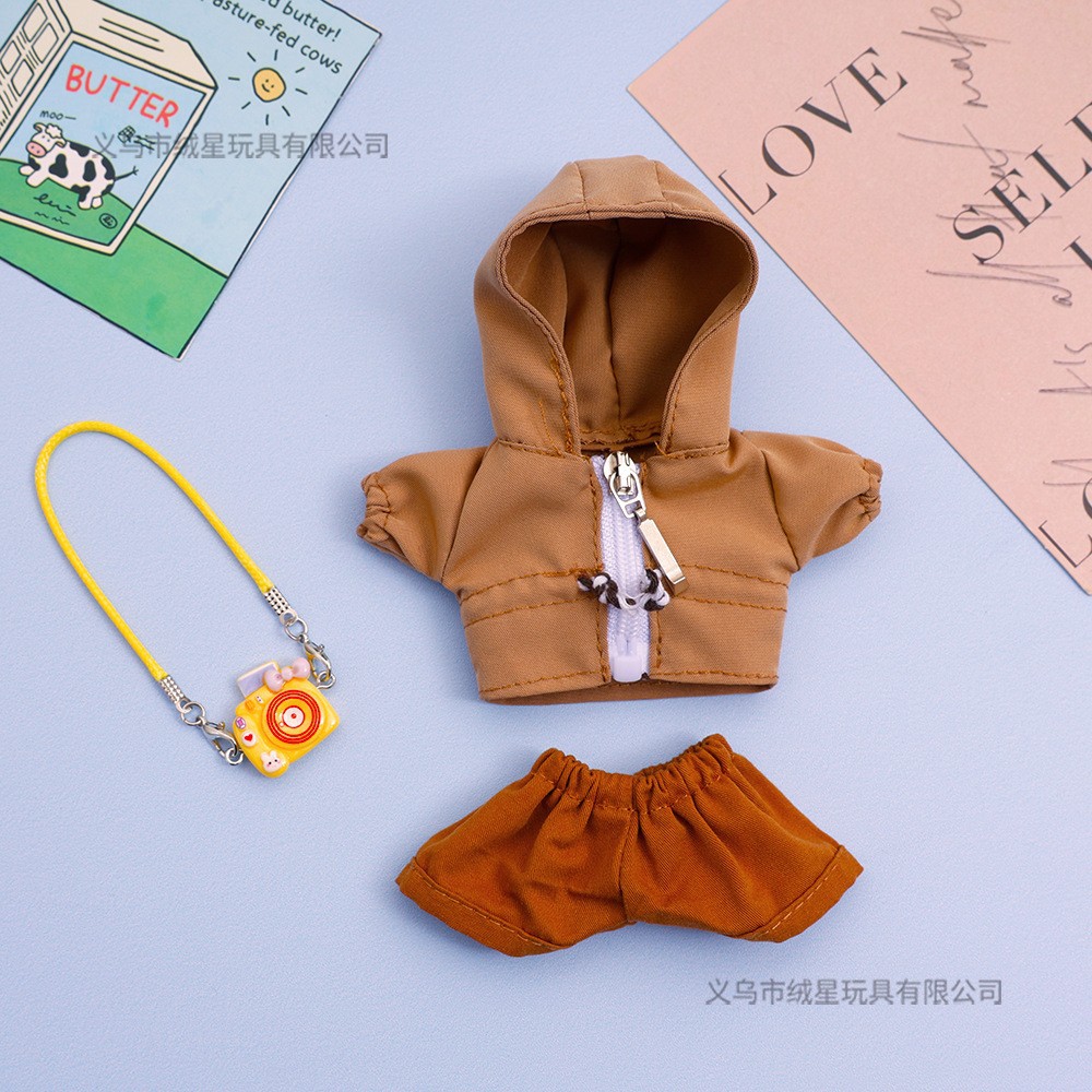 • RX259 커피 카툰 T + 카키 캐주얼 팬츠 + 브라운 슈즈 + 옐로우 카툰 카메라 + 브라운 안경 (인형은 포함되지 않습니다)
