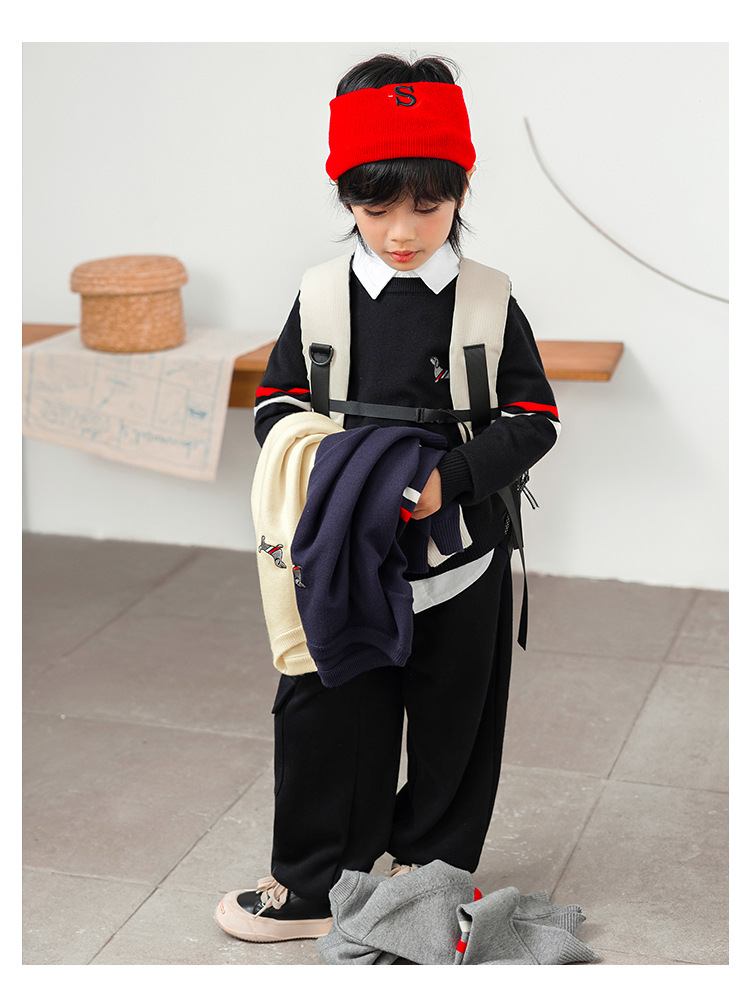 2025 여아 가을 겨울 의류, 여아 중대형 아동용 스트라이프 스웨터, 모직 베이스 레이어, 남아용 한국 스타일 아동복, 만화 캐릭터스토어 가기