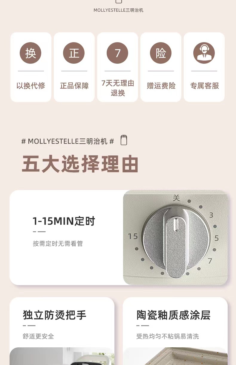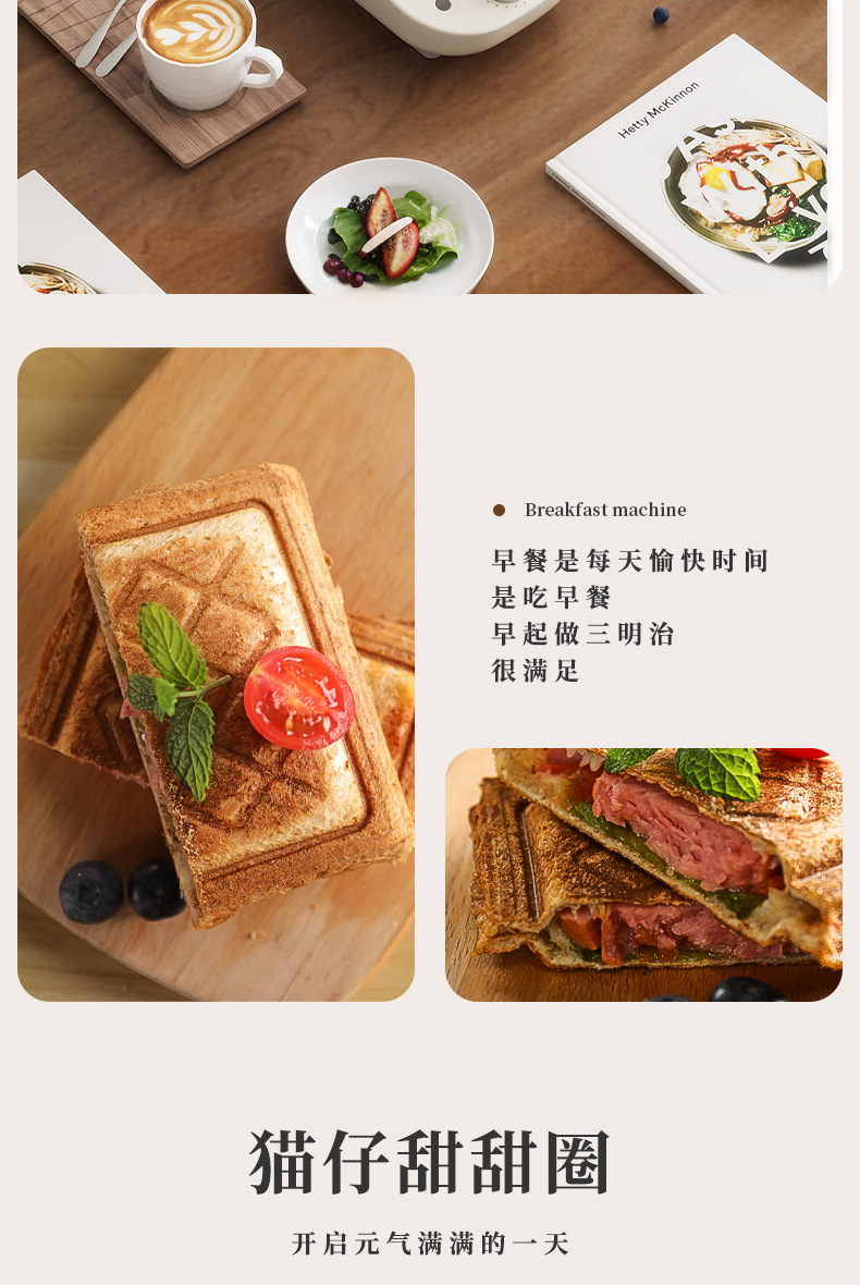Mollyestelle 샌드위치 아침 식사 기계 타이밍 다기능 가정용 소형 토스트 와플 토스터스토어 가기