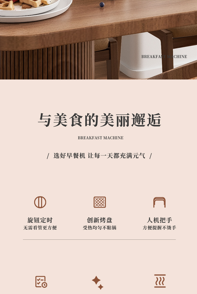 Mollyestelle 샌드위치 아침 식사 기계 타이밍 다기능 가정용 소형 토스트 와플 토스터