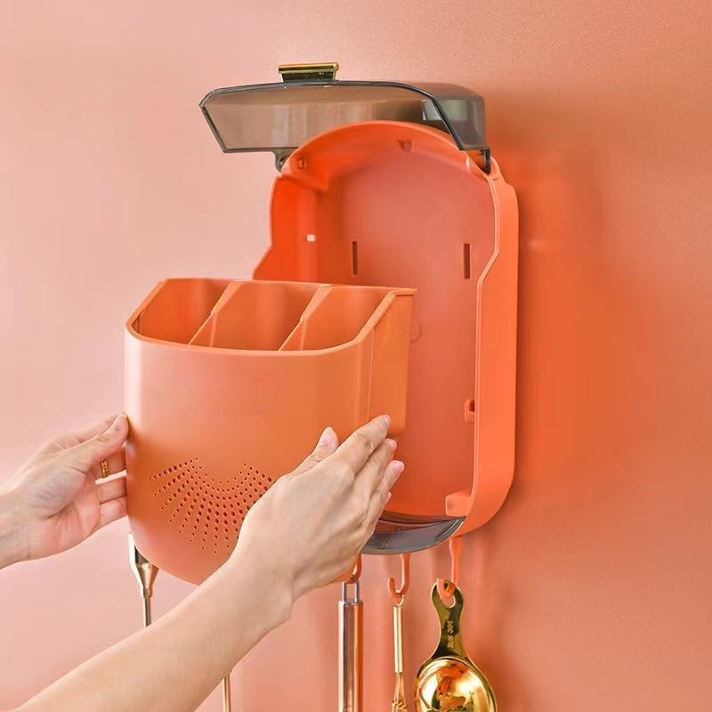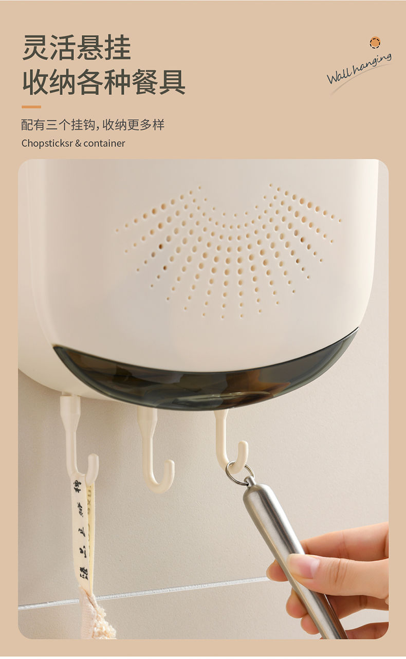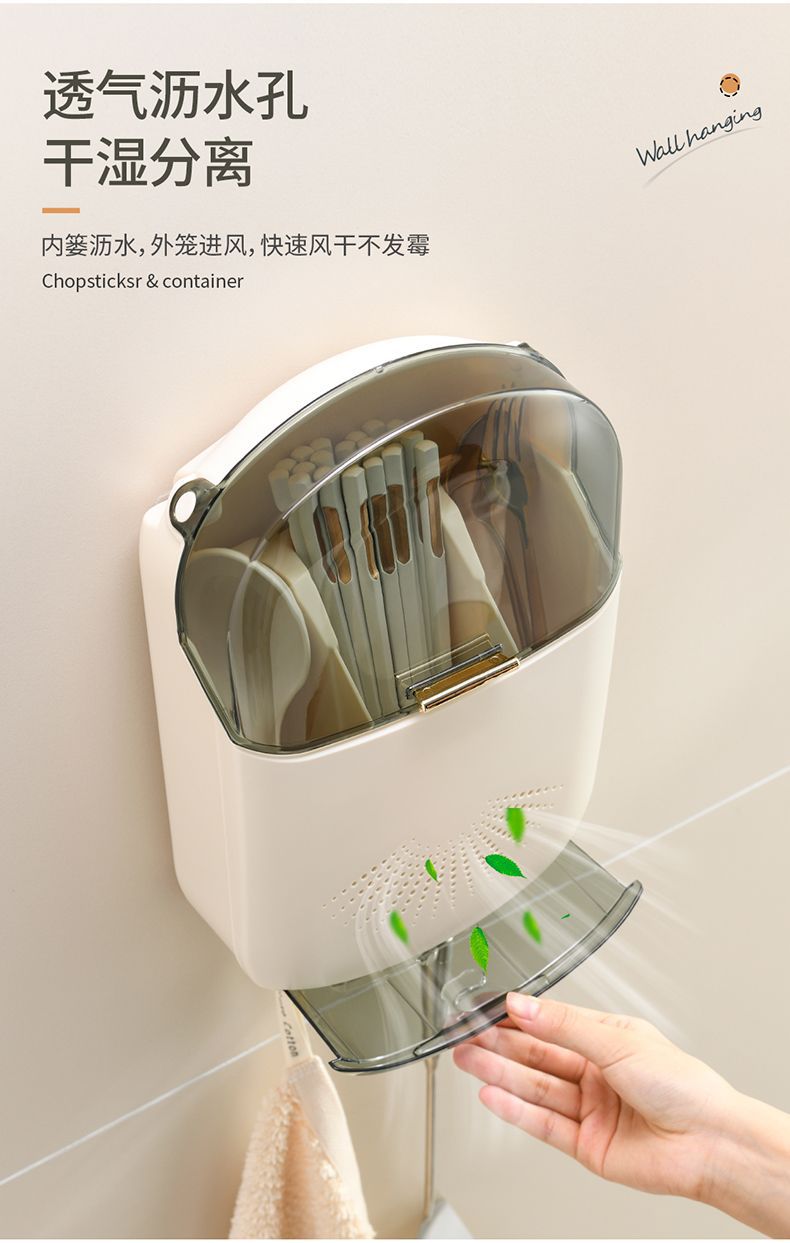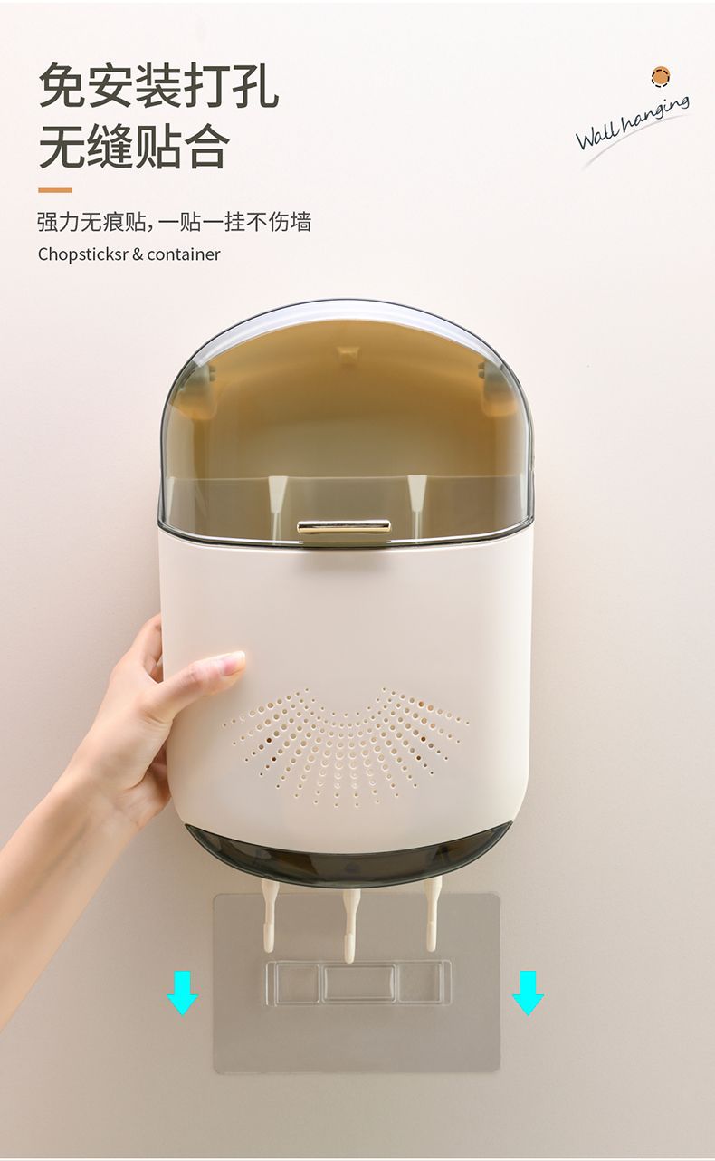 [내구성이 뛰어나고 청소가 용이함] 가정용 펀치 없는 젓가락통 벽걸이형 주방 배수구 방진 보관함 걸이