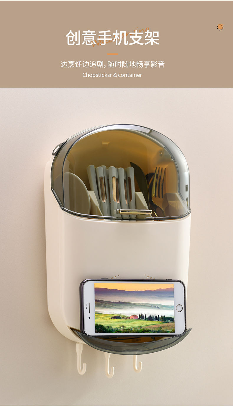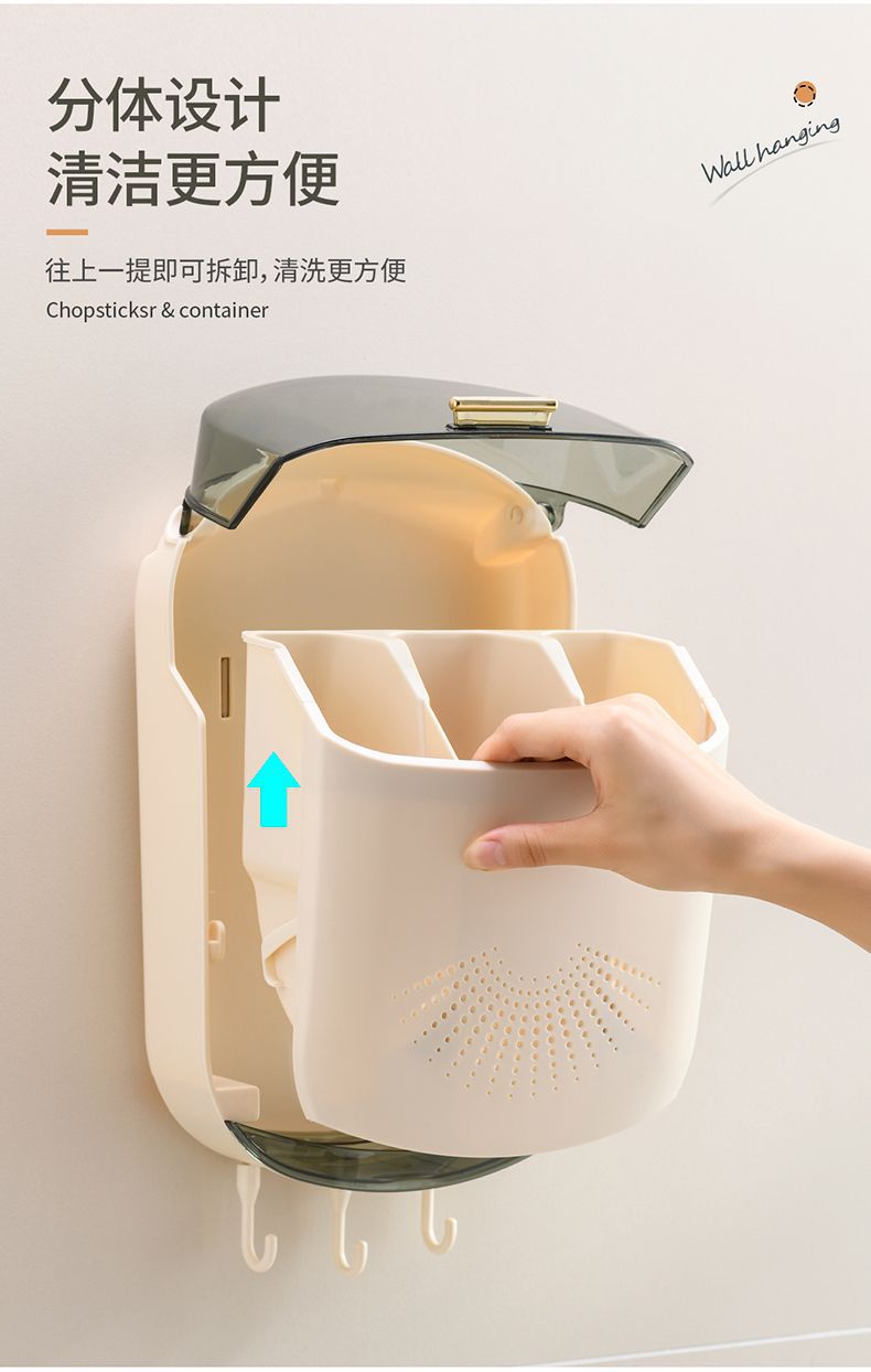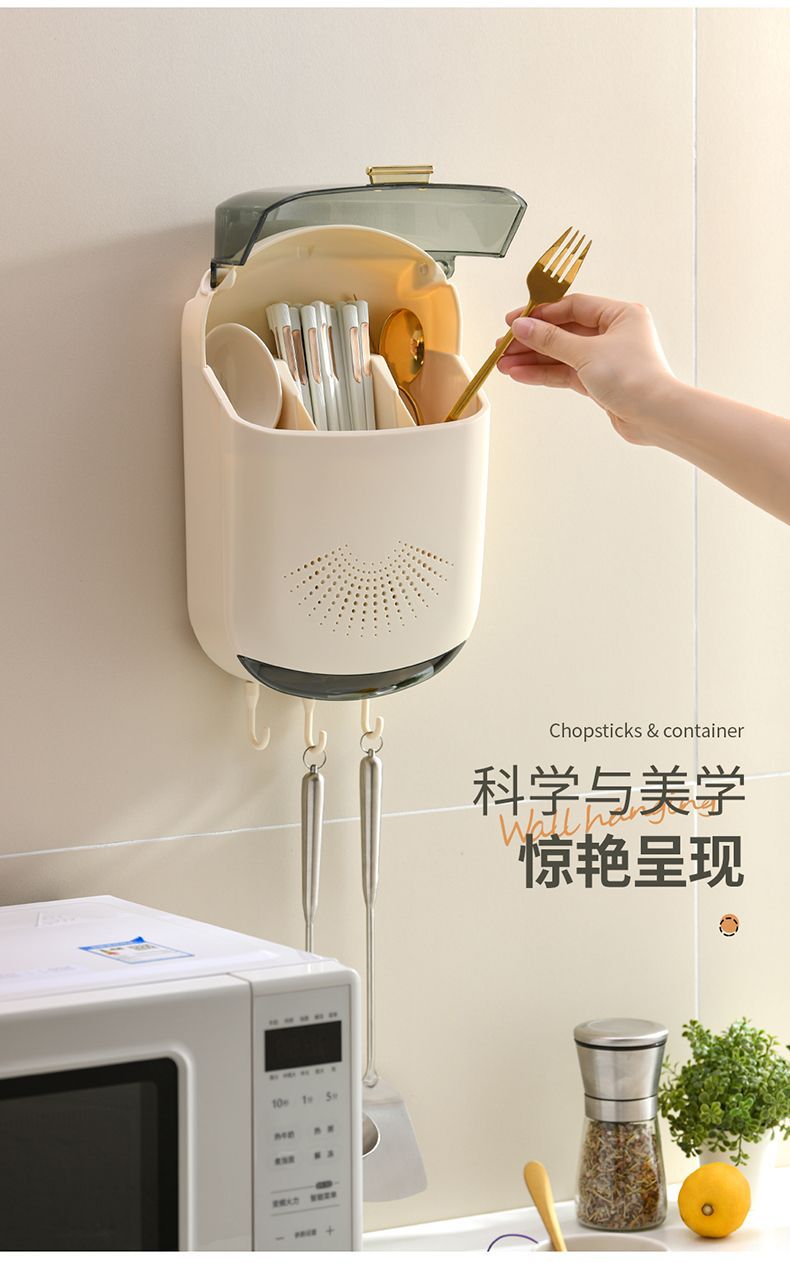 [내구성이 뛰어나고 청소가 용이함] 가정용 펀치 없는 젓가락통 벽걸이형 주방 배수구 방진 보관함 걸이