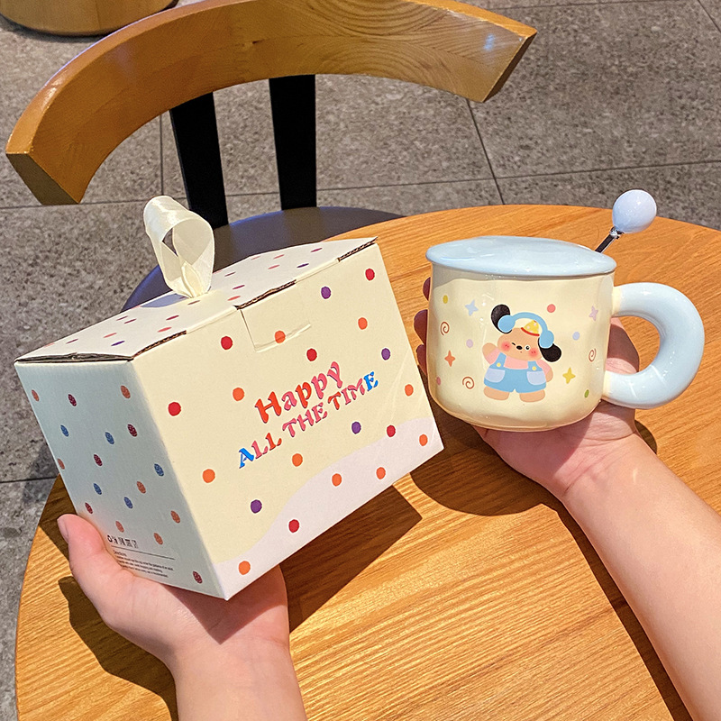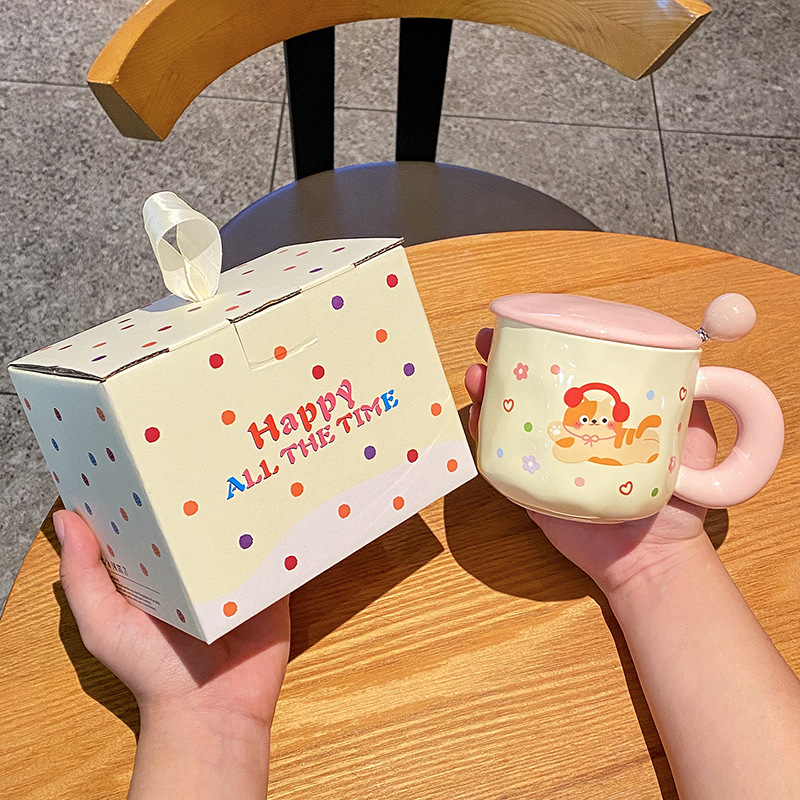 Ins 귀여운 강아지 머그잔 소녀를위한 멋진 세라믹 커플 워터 컵 생일 선물 동반자 선물스토어 가기