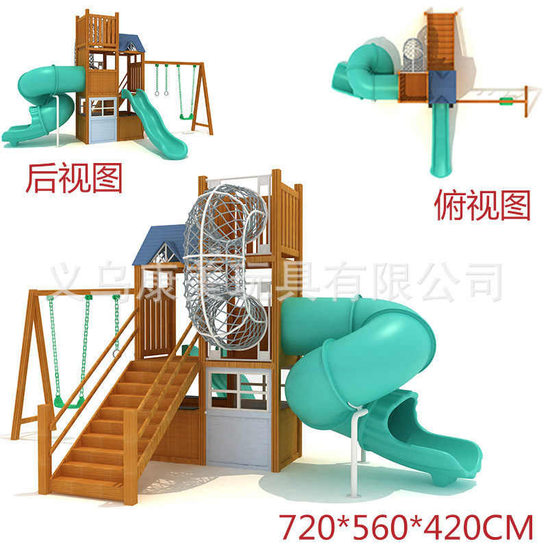 나무 슬라이드 황화리 야외 어린이 등반 장난감 목조 주택 드릴링 네트 조합 스윙 놀이터 명소 시설