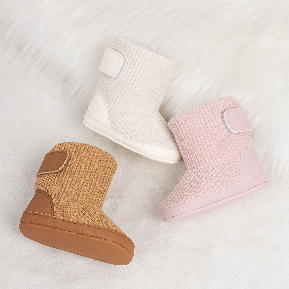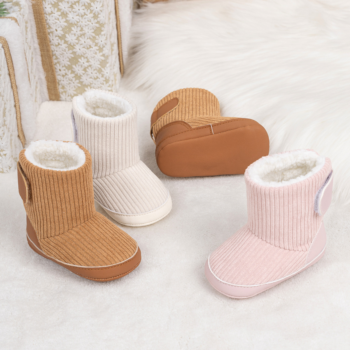대외 무역 새로운 겨울 단색 아기 신발 두꺼운 부드러운 천 바닥 벨크로 실내 아기 운동화 도매 아기스토어 가기