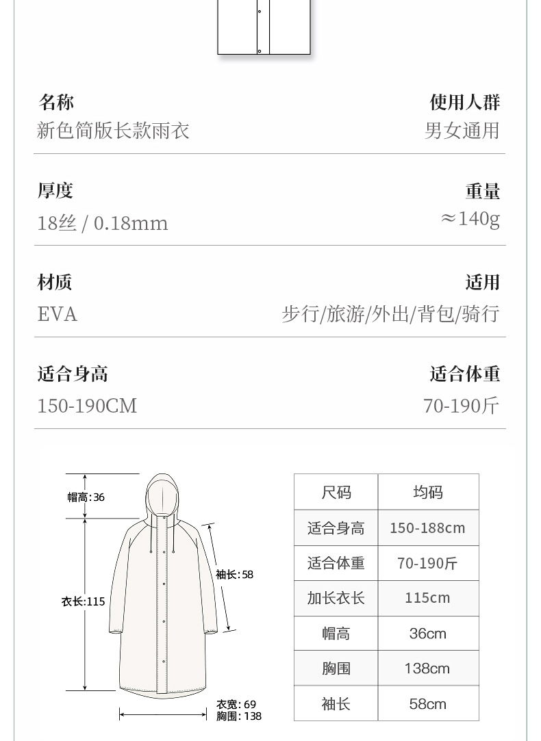 品名:户外雨衣-18丝加厚