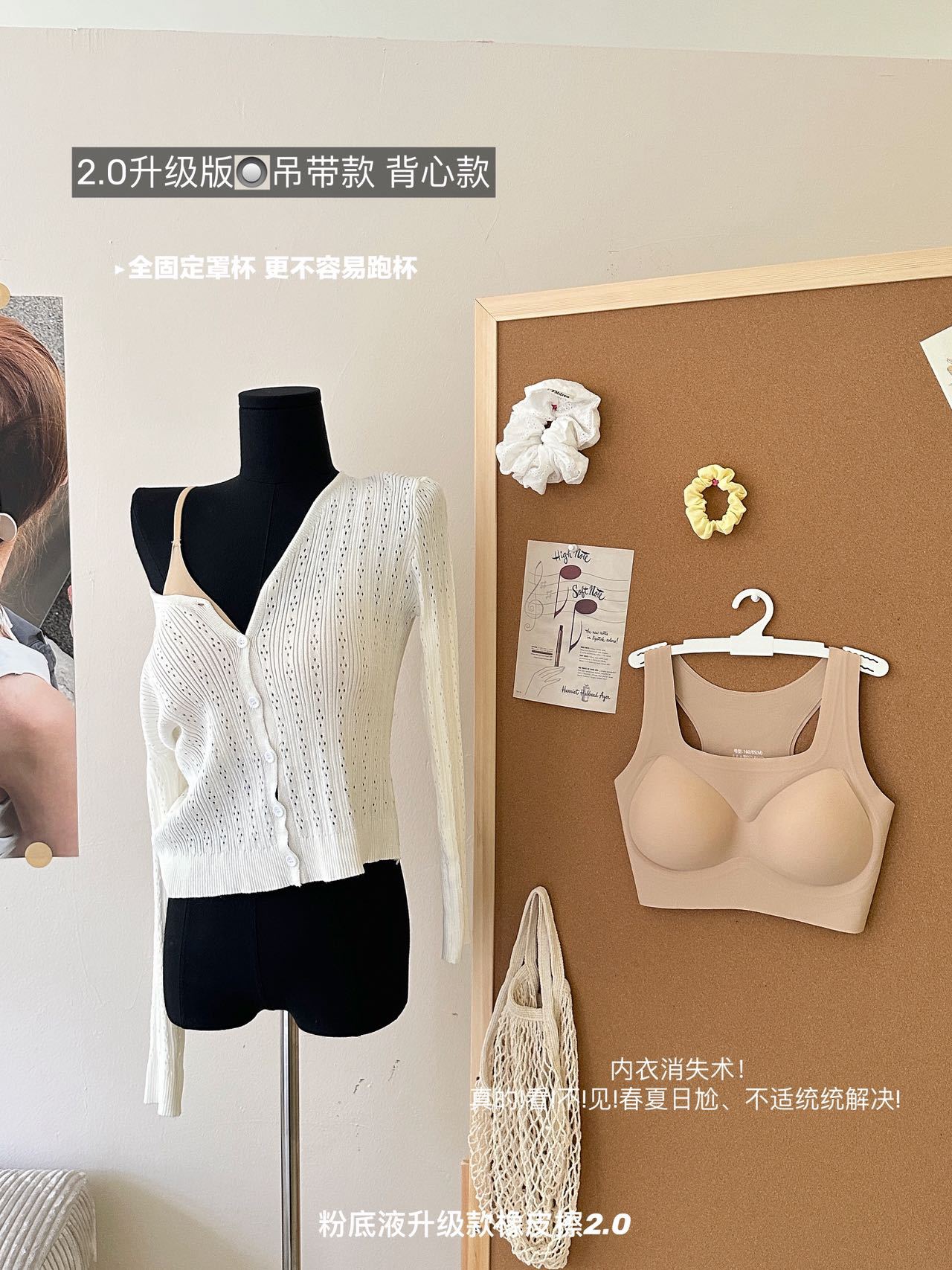 여성용 리퀴드 파운데이션 속옷, 고정 컵, 흔적 없는 보이지 않는 스파게티 스트랩, 아름다운 등 브라, 스포츠 얇은 와이어 프리 브라, 여름스토어 가기
