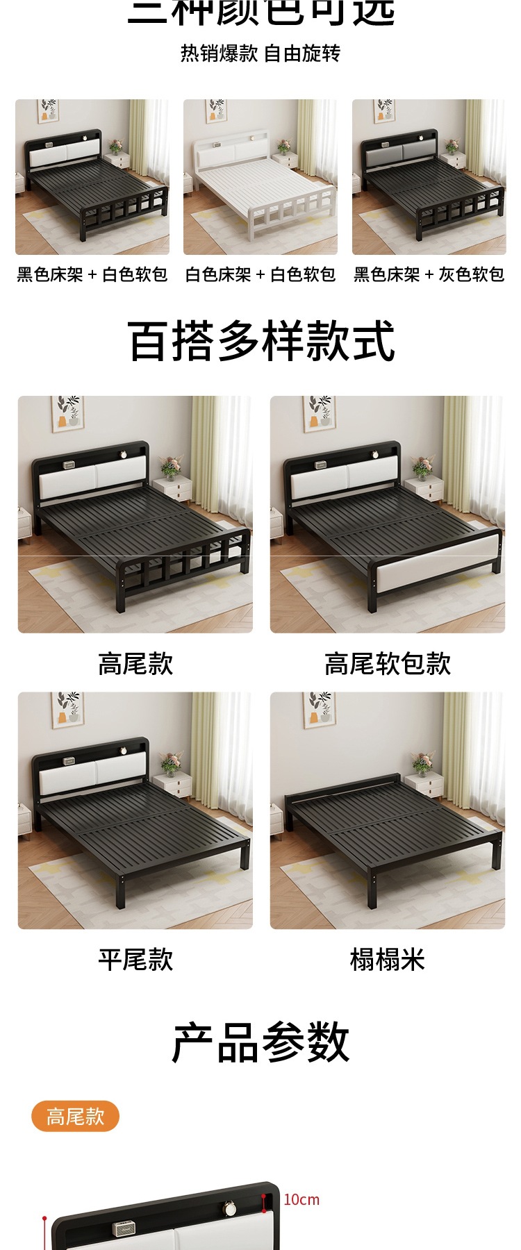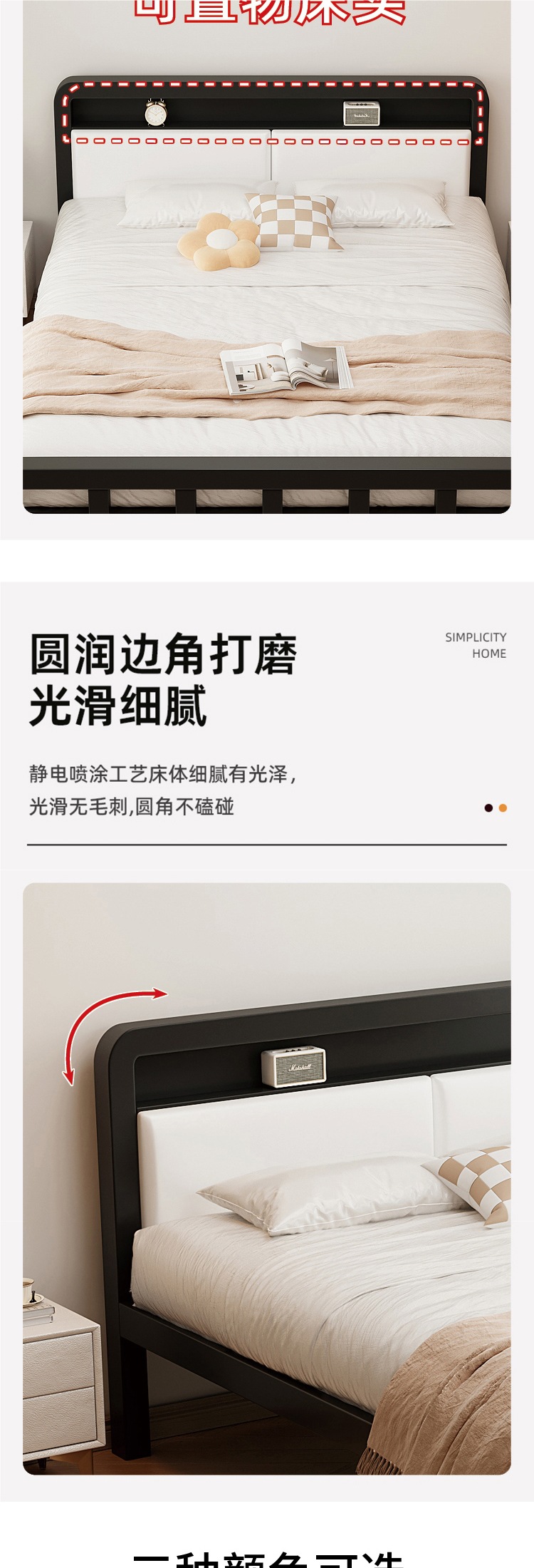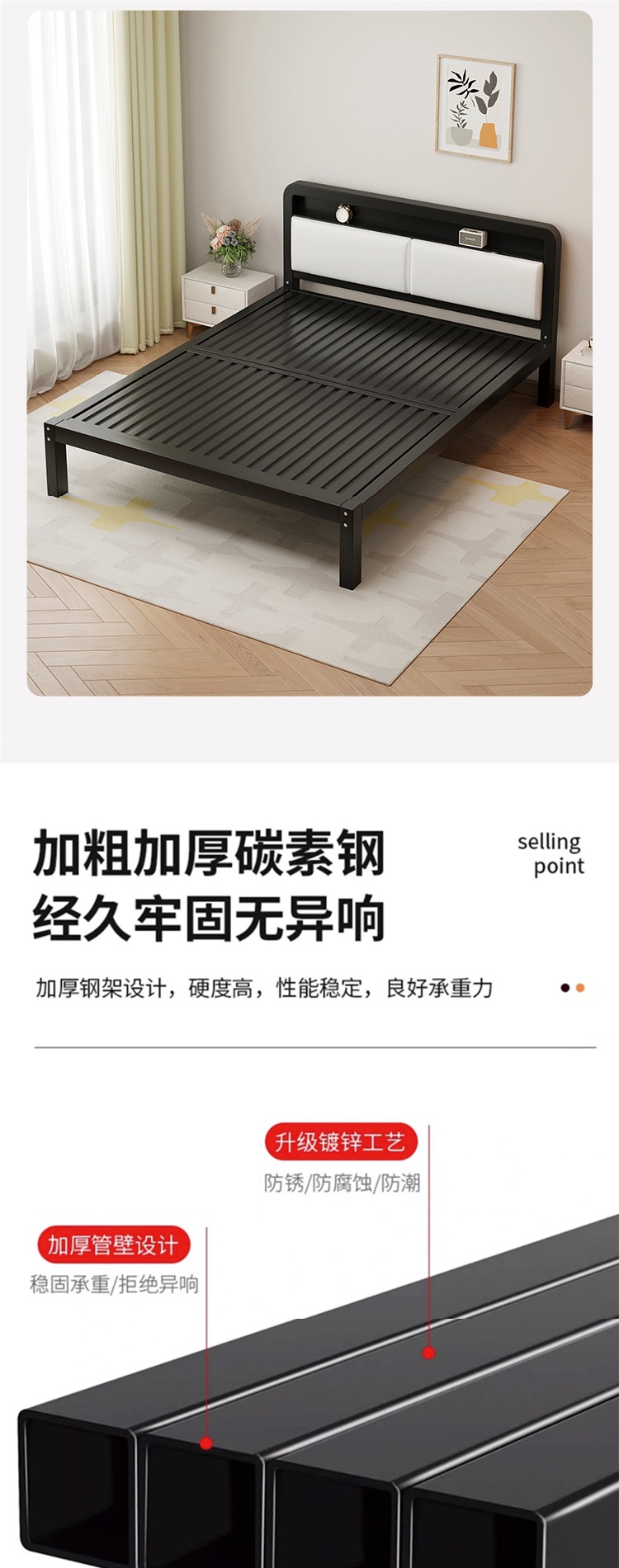 가정용 철제 침대 더블 침대 1.8m 두꺼운 철제 침대 임대용 스테인레스 스틸 싱글 침대 프레임 철제 프레임 침대스토어 가기