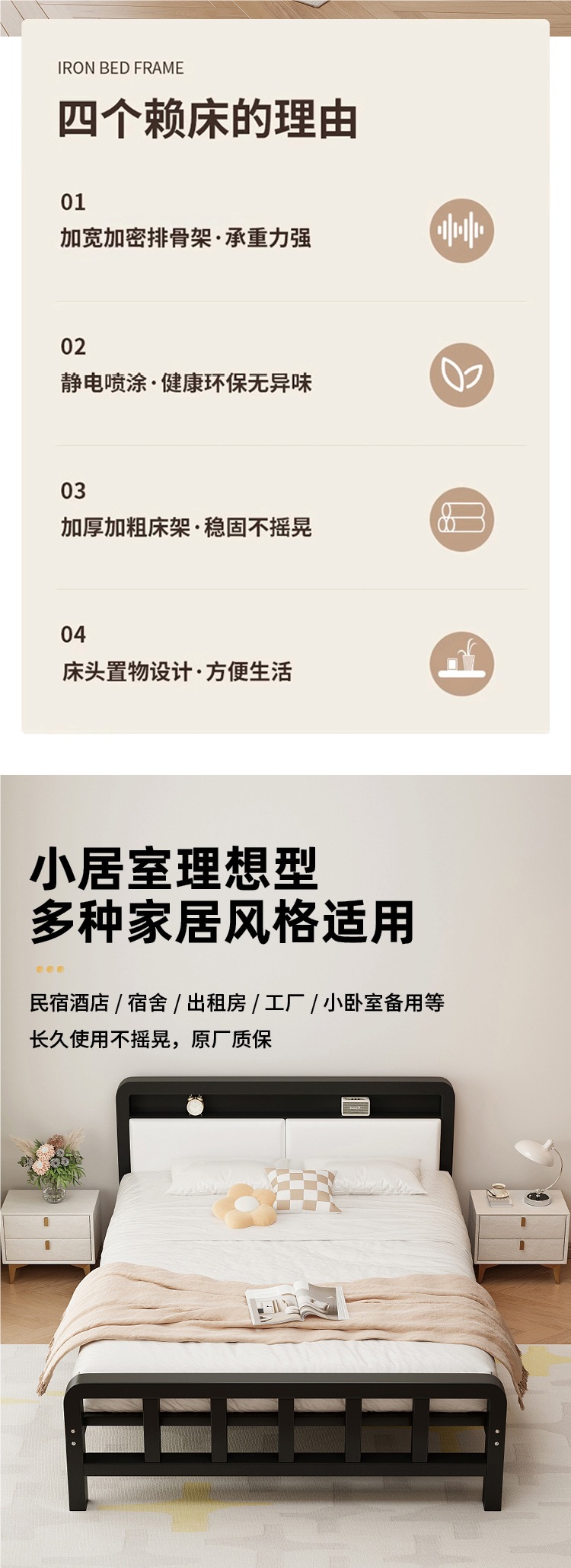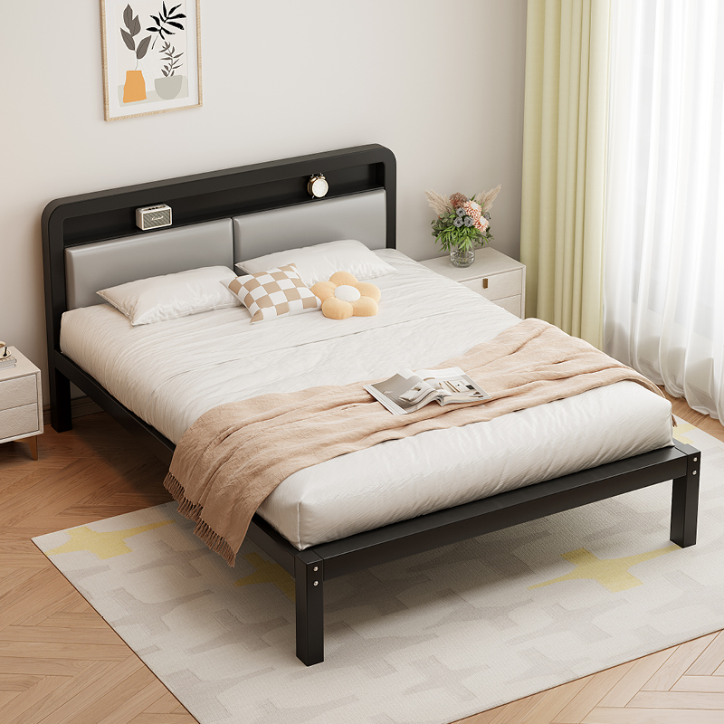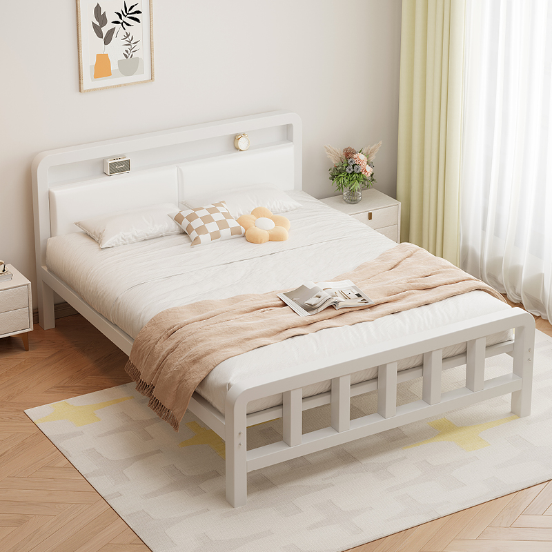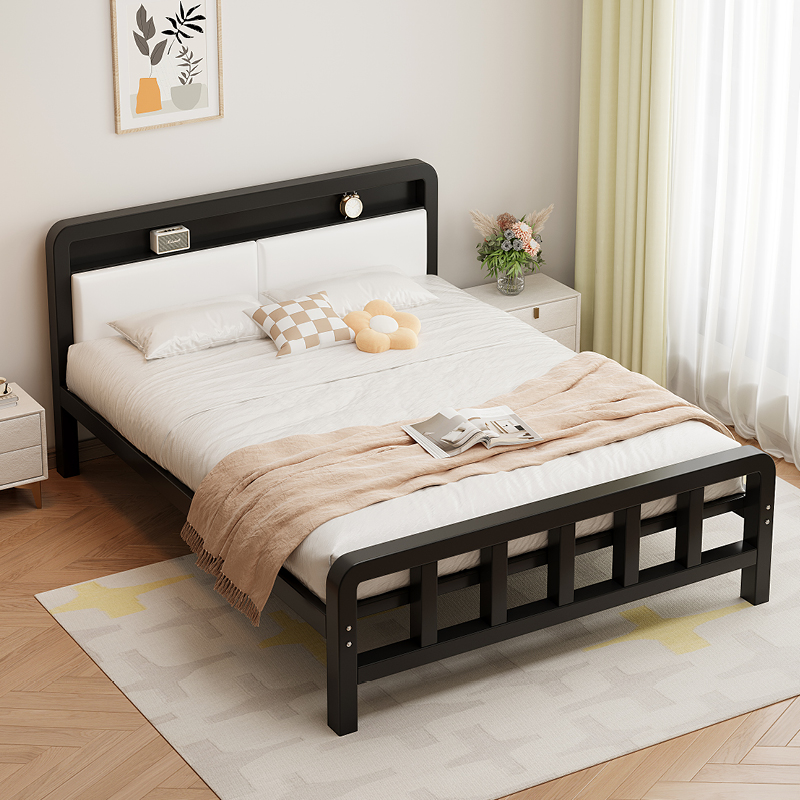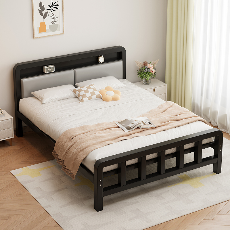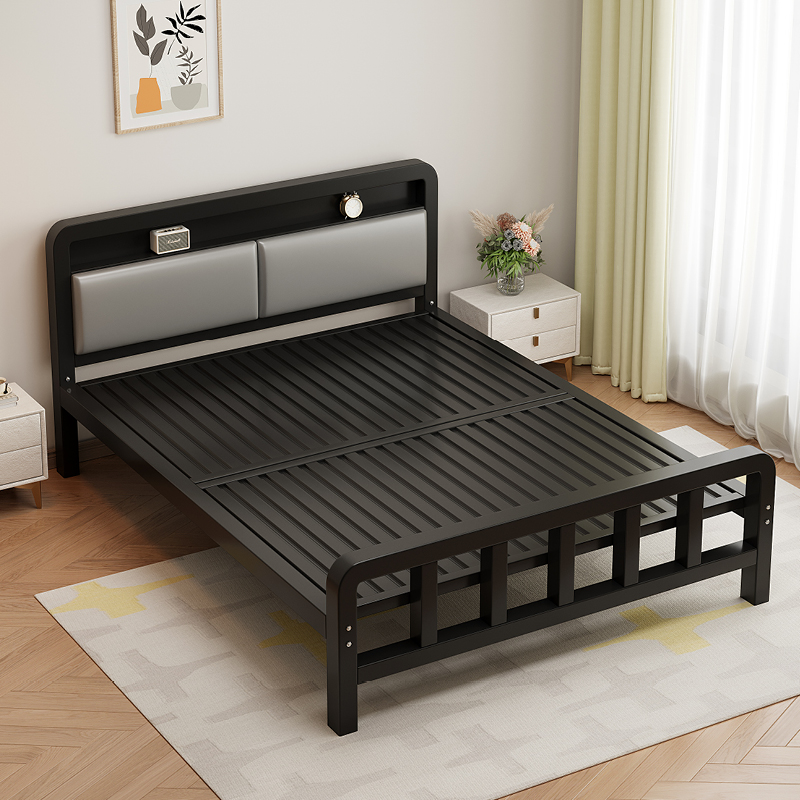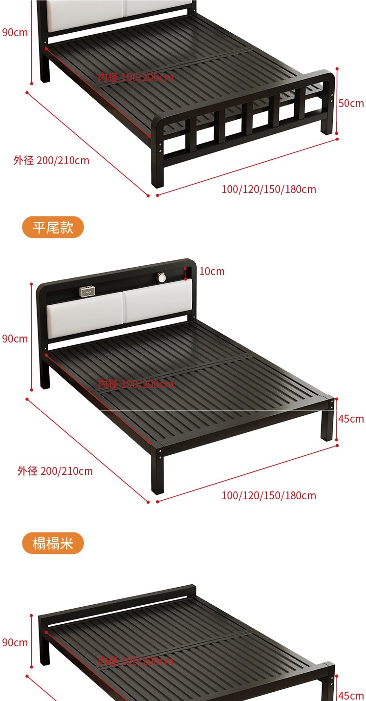가정용 철제 침대 더블 침대 1.8m 두꺼운 철제 침대 임대용 스테인레스 스틸 싱글 침대 프레임 철제 프레임 침대