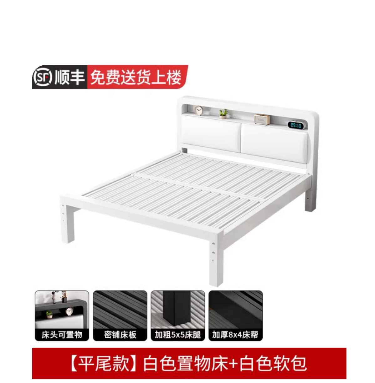 • [플랫테일 스타일] 화이트 침대, 화이트 소프트 가방 + 스프링 매트리스 20cm개