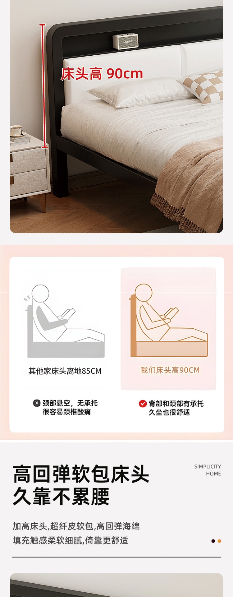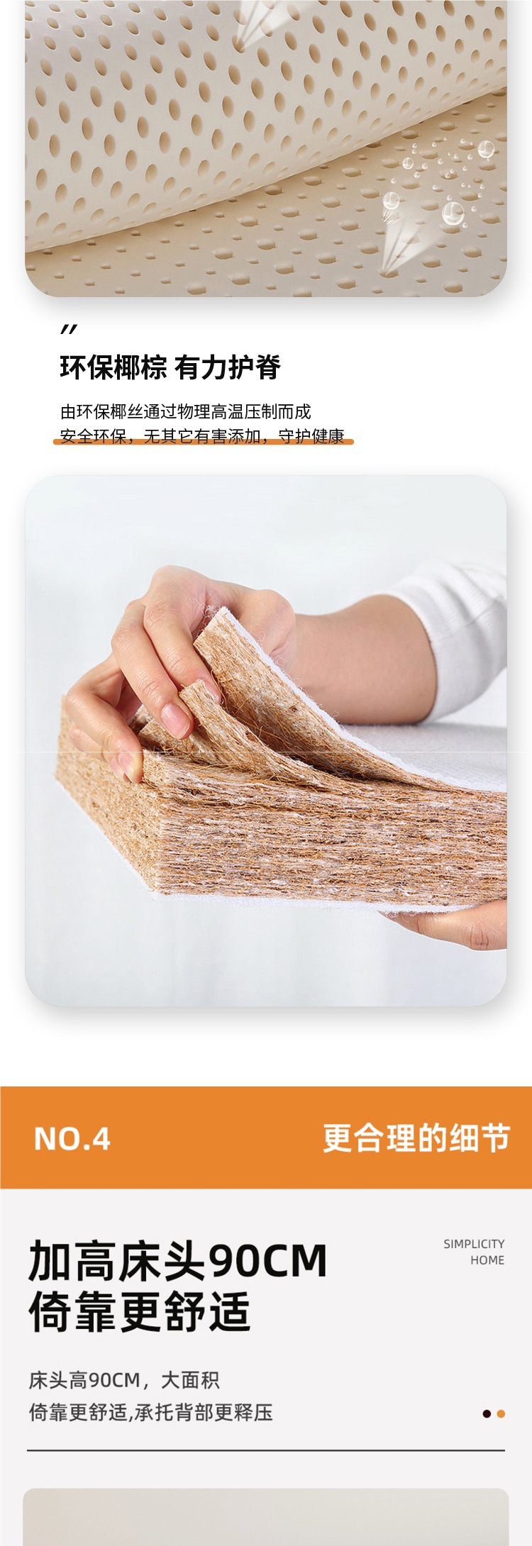 • [하이엔드 모델] 흰색 소프트백이 포함된 블랙 침대 + 코코넛 야자 매트리스 8cm개