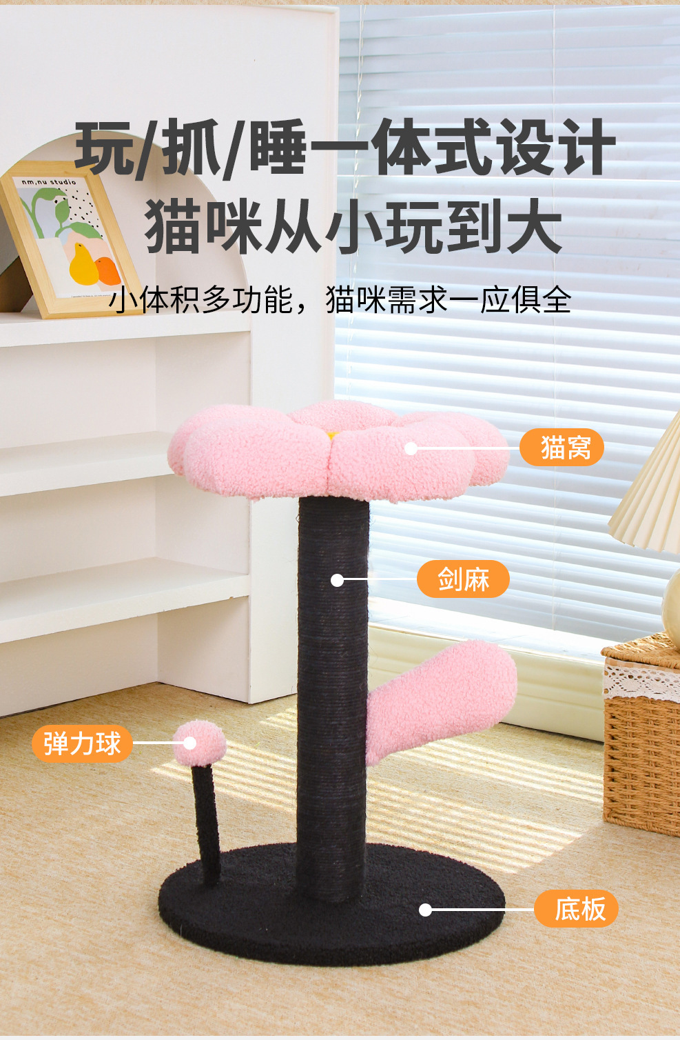 고양이 클라이밍 프레임, 특수 고양이 둥지, 고양이 트리, 일체형 다층 고양이 클라이밍 프레임, 고양이 발톱 기둥, 작은 꽃, 작은 새 모델