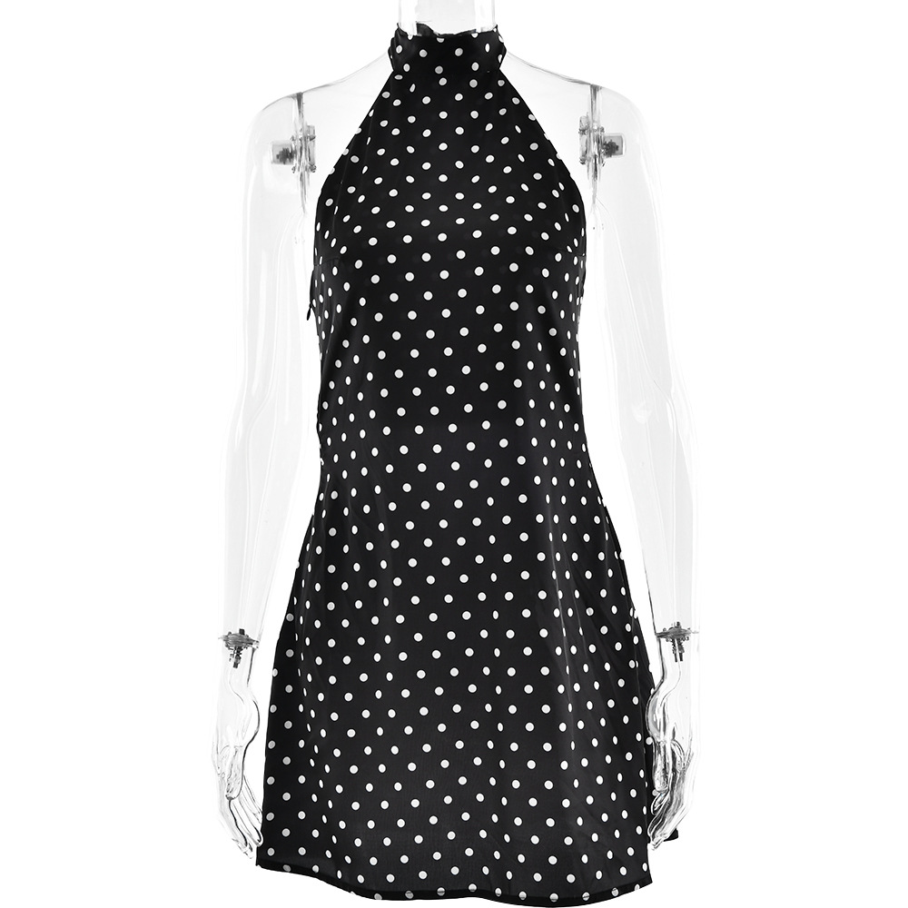 2025 여름 새로운 유럽과 미국 스타일의 여성 패션 섹시한 폴카 도트 허리 라운드 넥 민소매 슬림 피트 힙 드레스스토어 가기