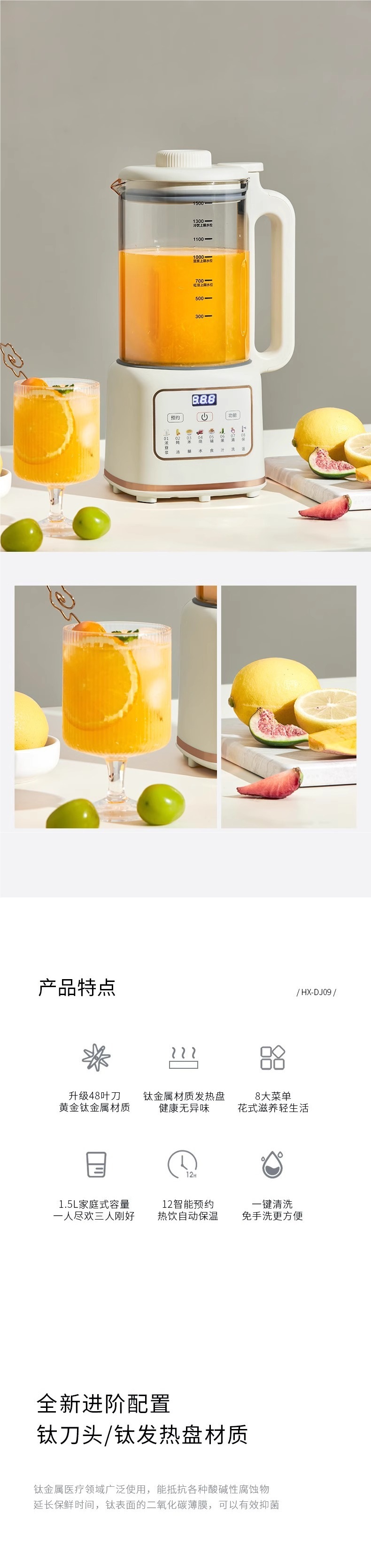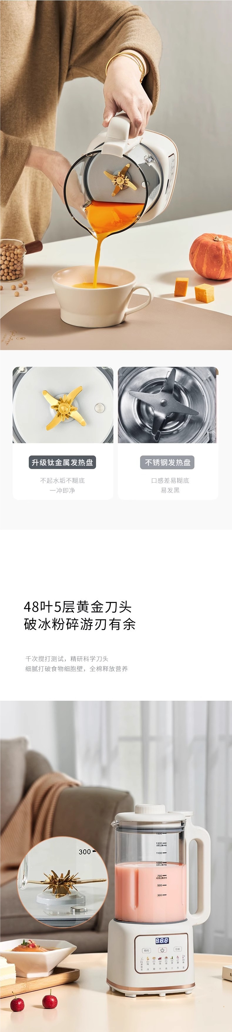 • 화이트 1500ML [48페이지 황금 티타늄 칼 + 항균 티타늄 도금 섀시]