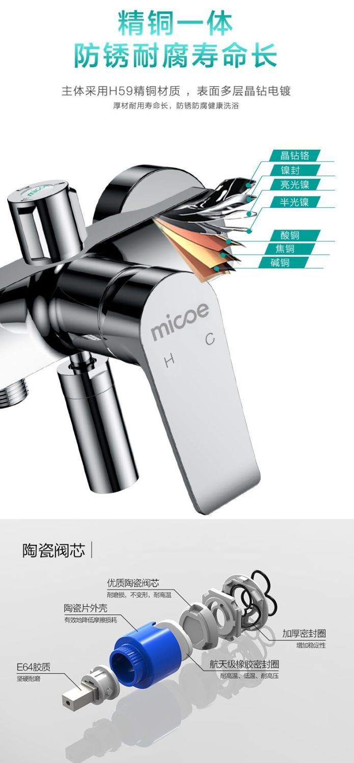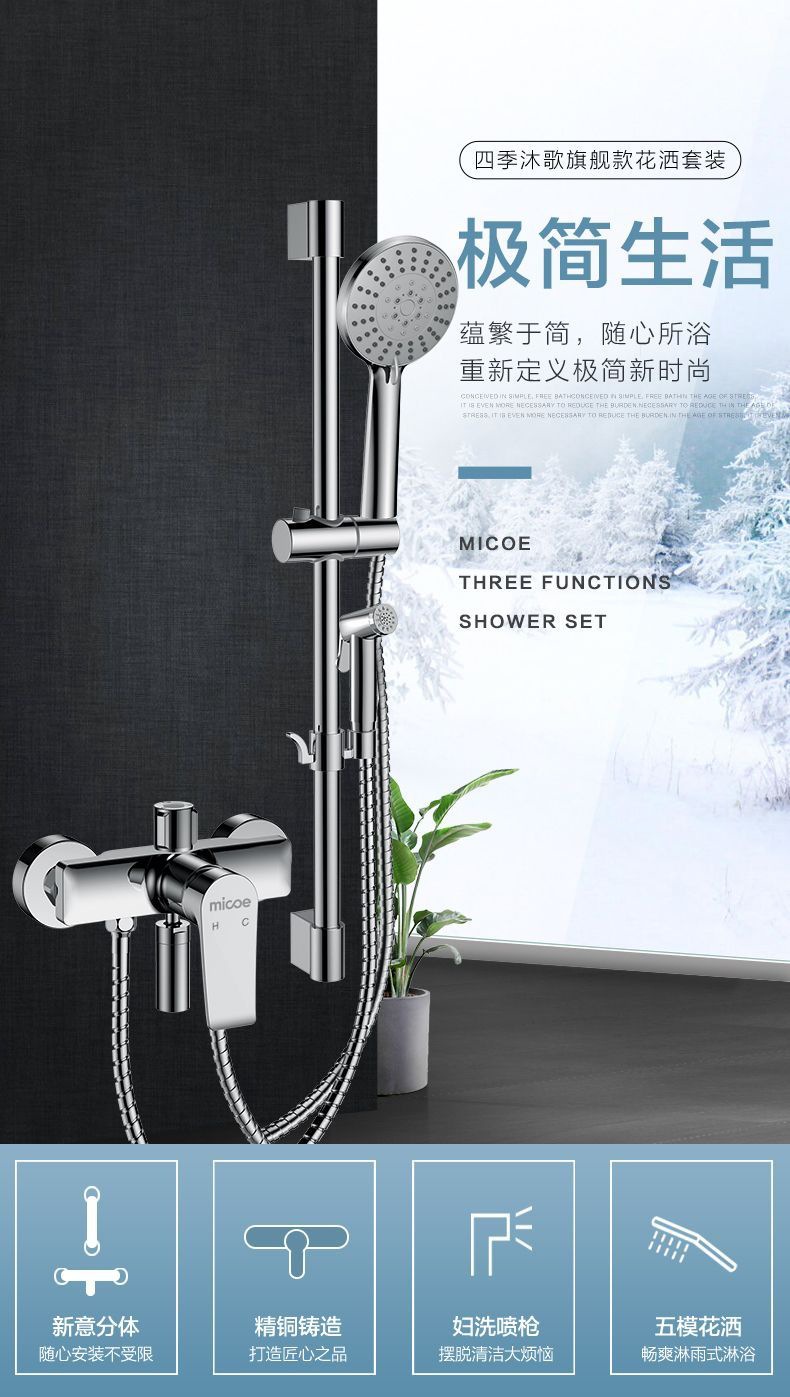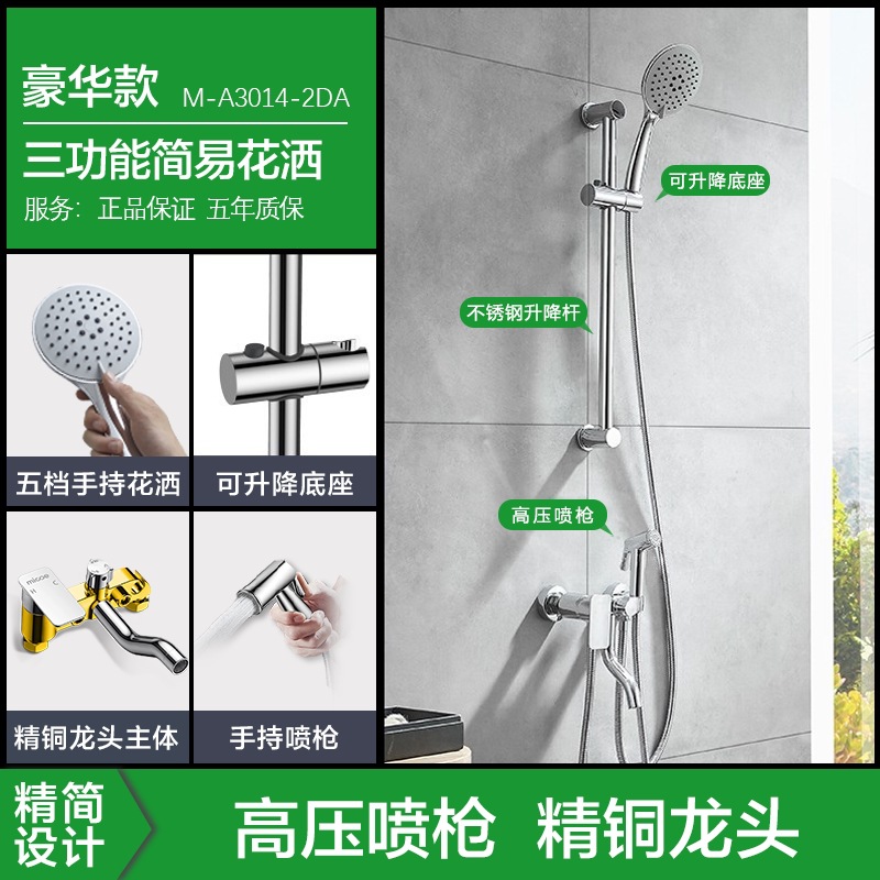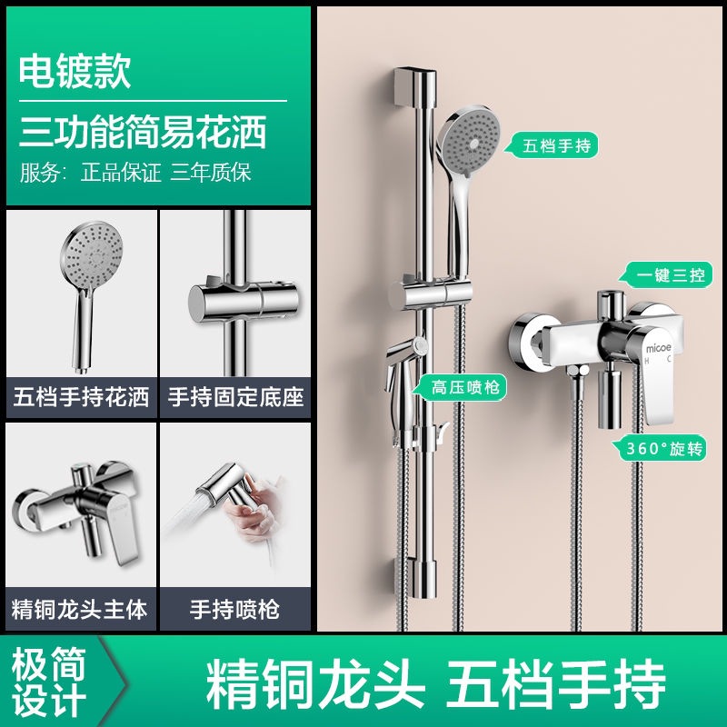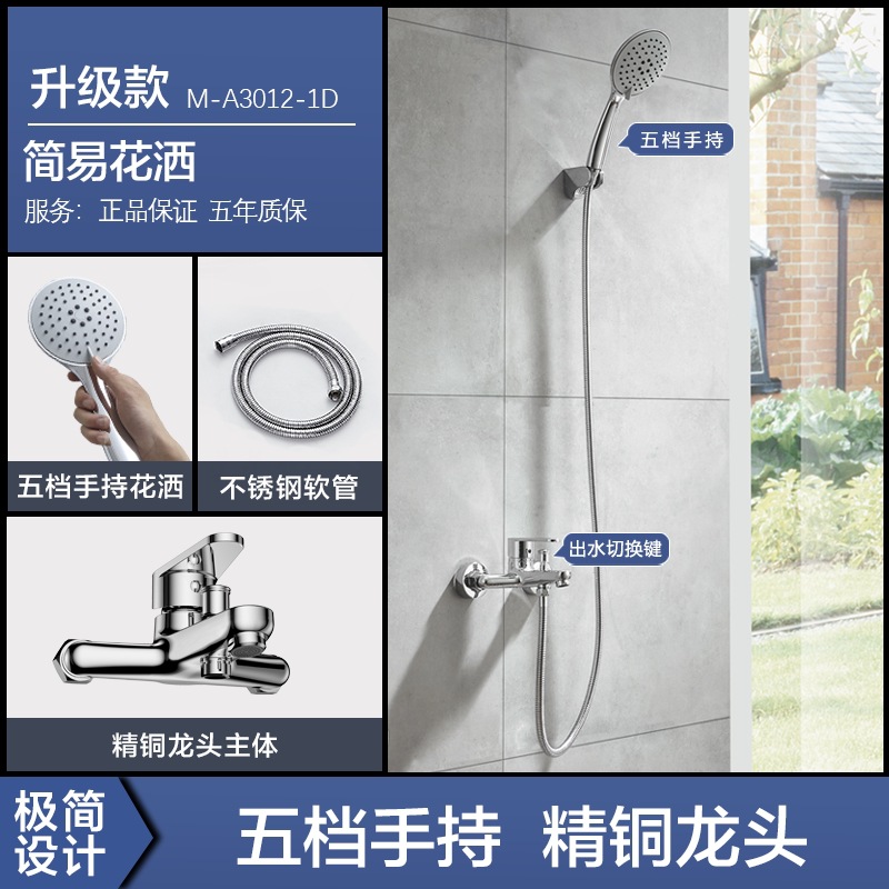Four Seasons Muge 홈 샤워 풀 구리 벽걸이 형 간단한 레인 샤워 헤드 간단한 소형 샤워 세트스토어 가기