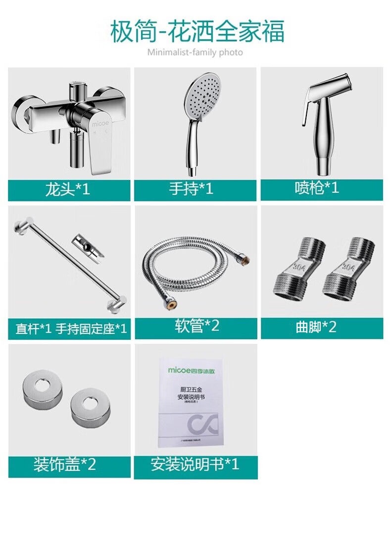 Four Seasons Muge 홈 샤워 풀 구리 벽걸이 형 간단한 레인 샤워 헤드 간단한 소형 샤워 세트