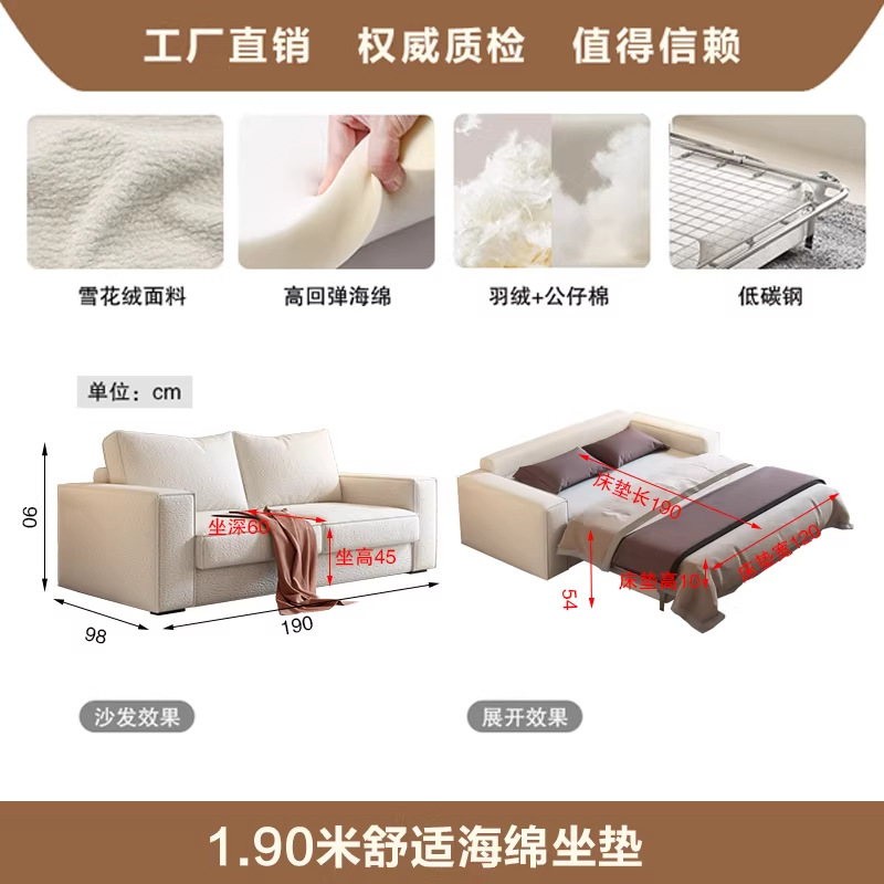 눈꽃무늬 벨벳 소파베드, 매트리스 내장형, 가정용 침대, 매트리스 내장형, 접이식 소파베드, 모던하고 심플한 디자인