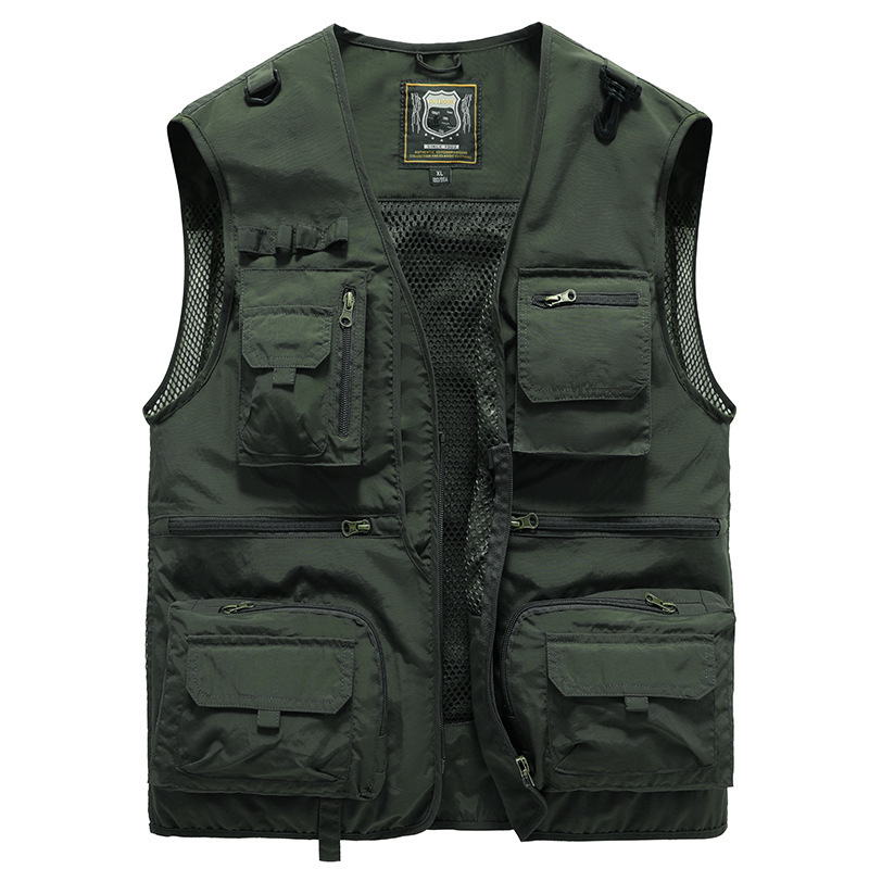 新款男士马甲夏季摄影钓鱼多口袋背心户外休闲登山无袖V领坎肩