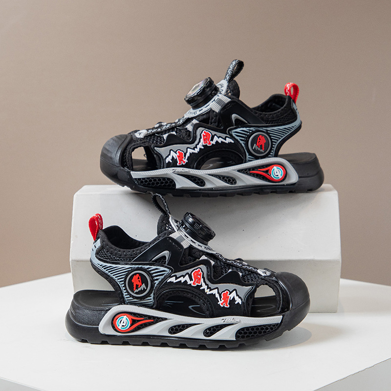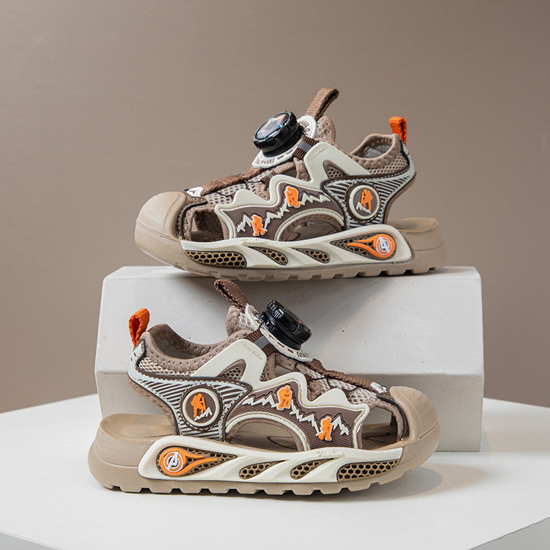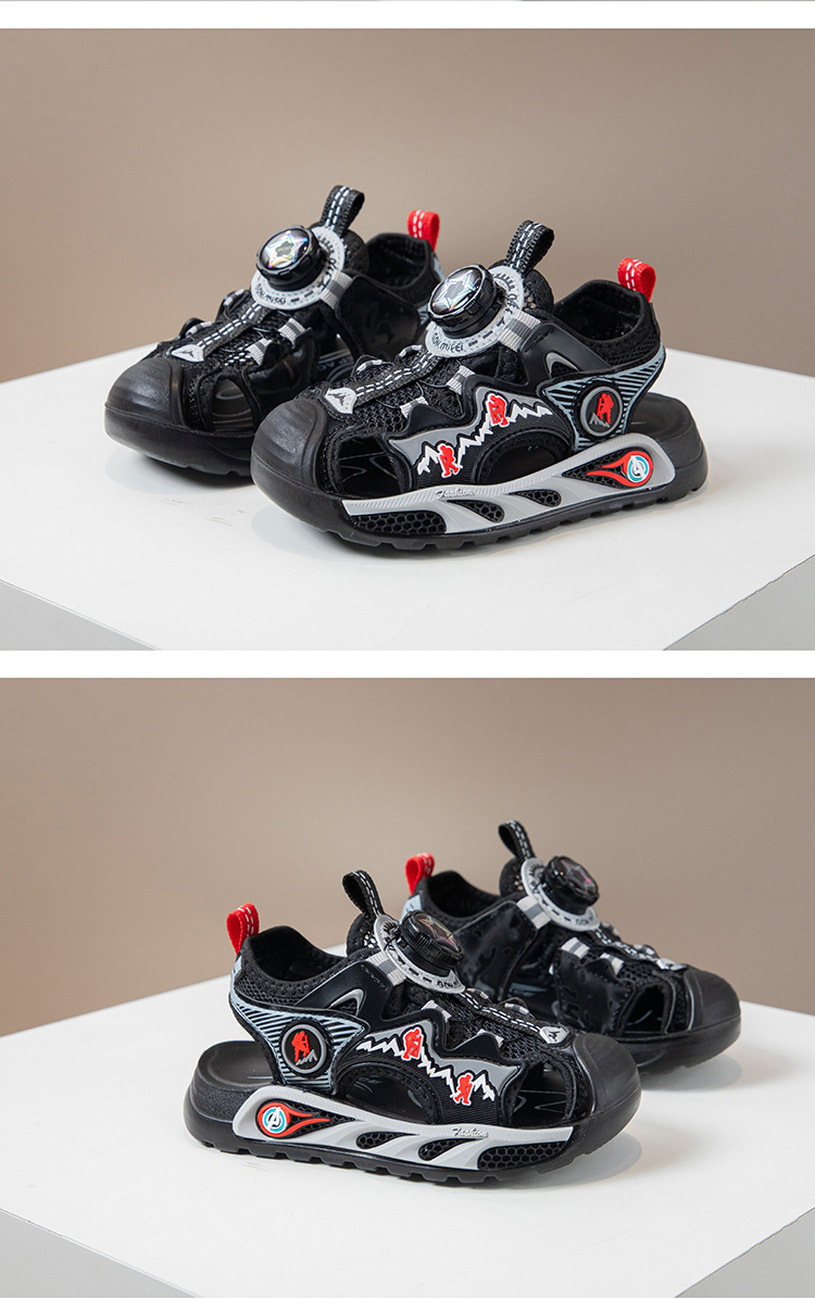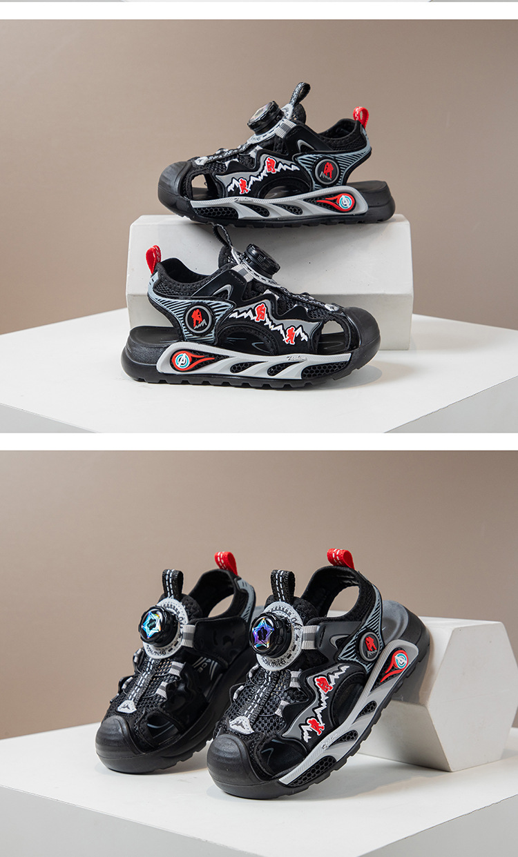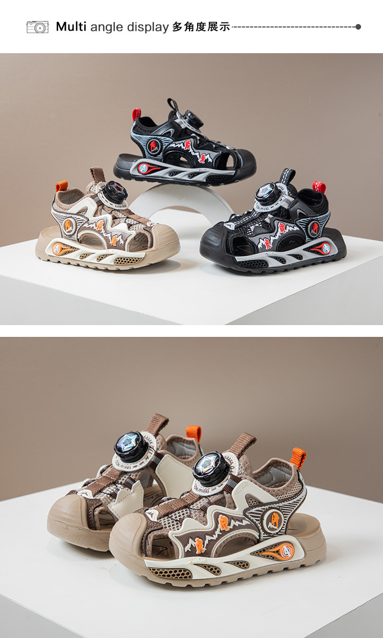 더블 스타 어린이 신발 2025 여름 새로운 스타일 소년과 소녀 바오터우 비치 신발 회전 발광 버클 샌들 제조 업체 배송