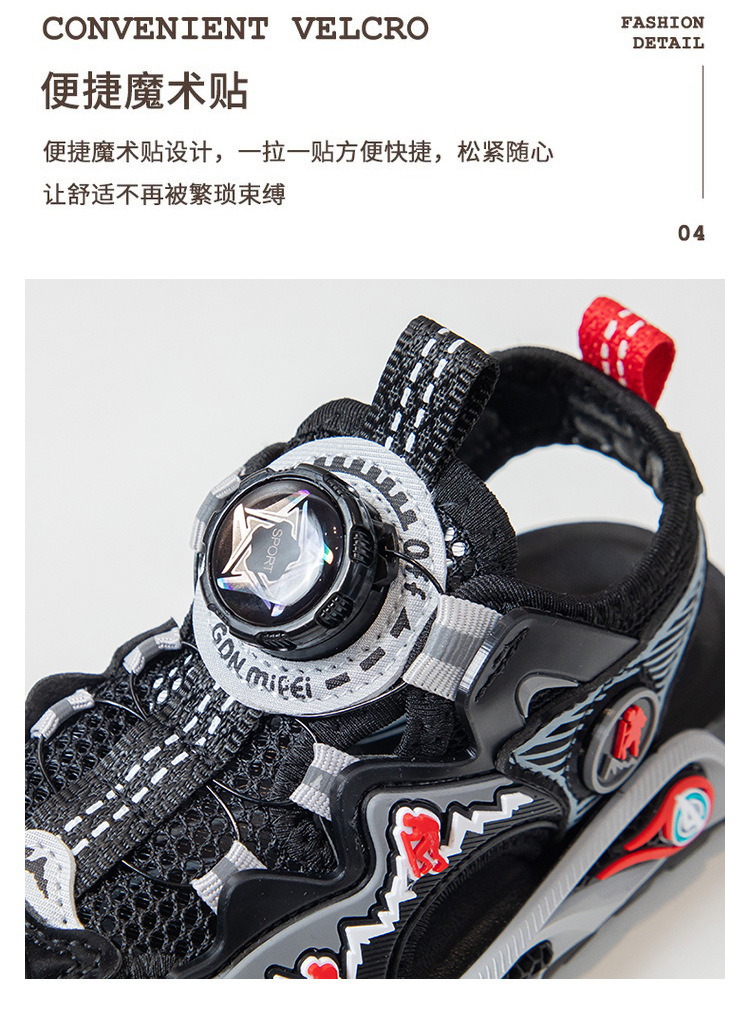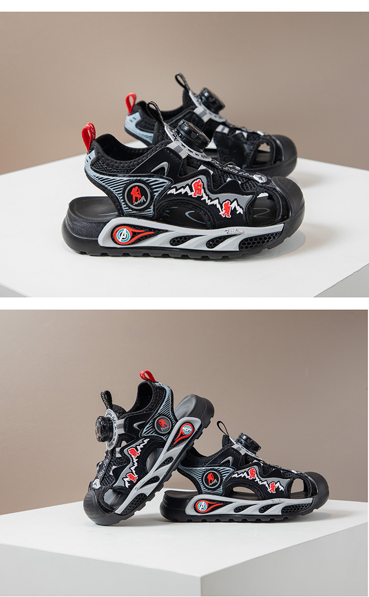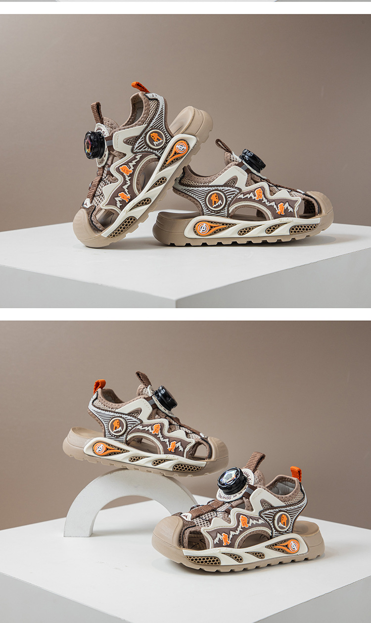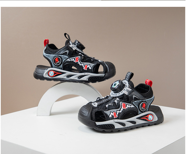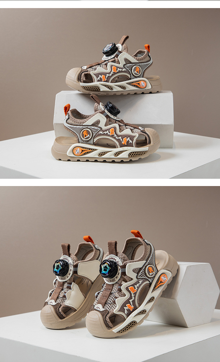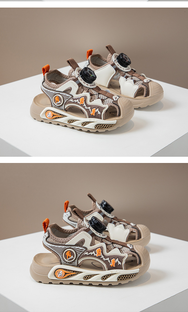 더블 스타 어린이 신발 2025 여름 새로운 스타일 소년과 소녀 바오터우 비치 신발 회전 발광 버클 샌들 제조 업체 배송
