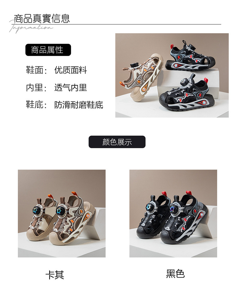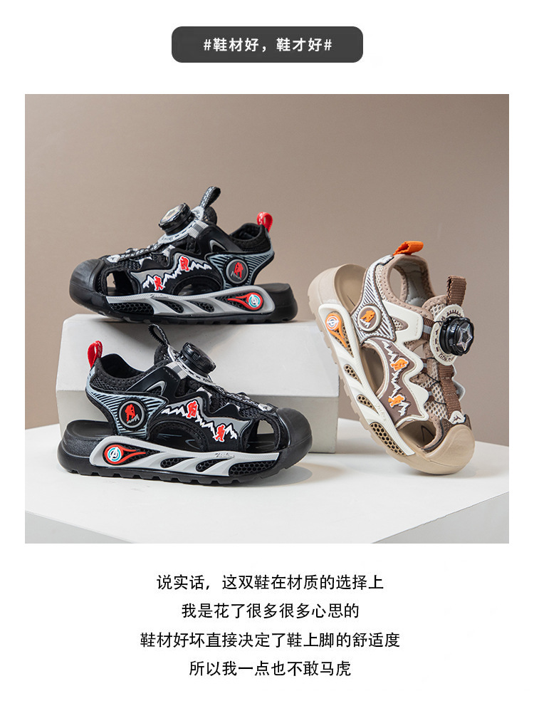 더블 스타 어린이 신발 2025 여름 새로운 스타일 소년과 소녀 바오터우 비치 신발 회전 발광 버클 샌들 제조 업체 배송스토어 가기