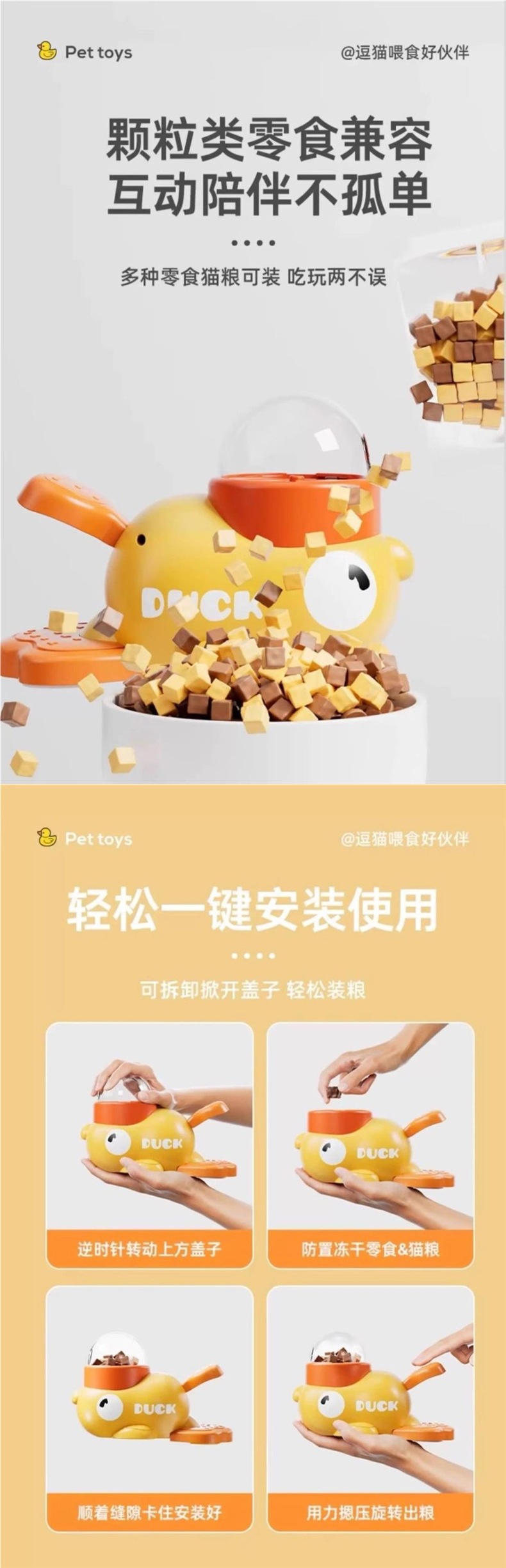 고양이 장난감, 고양이를 위한 자기 자극 및 지루함 해소 스틱, 애완동물 간식, 동결 건조된 작은 노란색 오리 발사기, 새끼 고양이 먹이 누출 장난감, 개스토어 가기