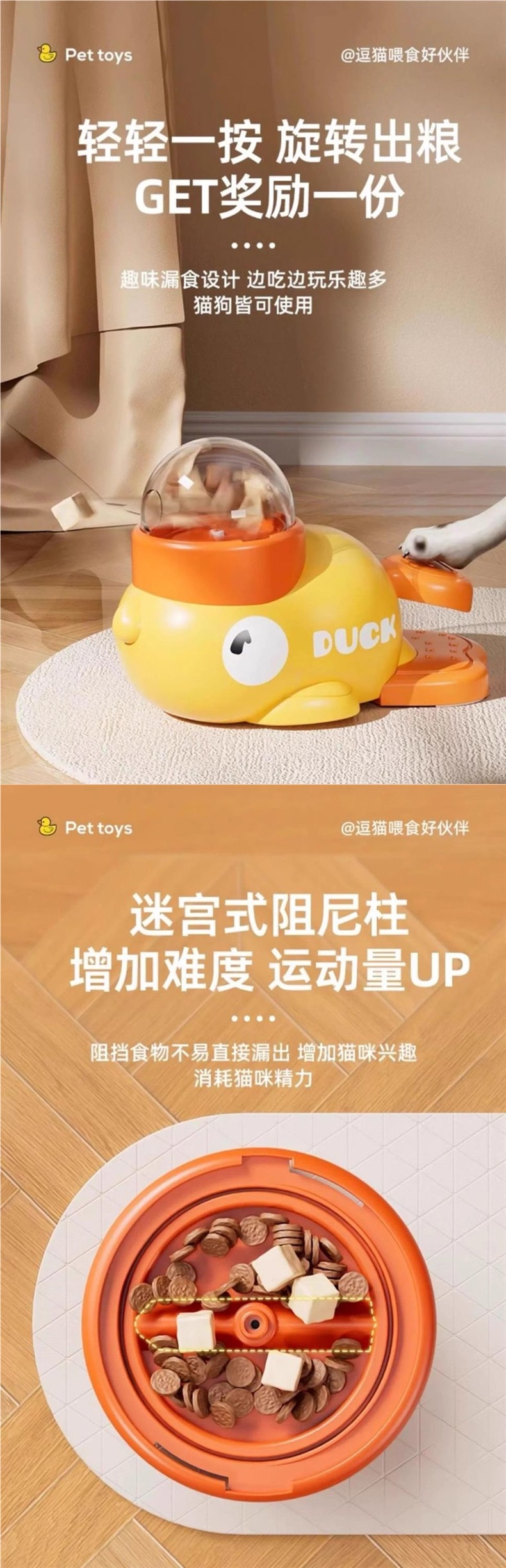• 작은 노란 오리 애완동물 먹이통 [회전하여 곡물을 배출하는 펠릿 스낵]