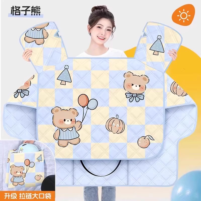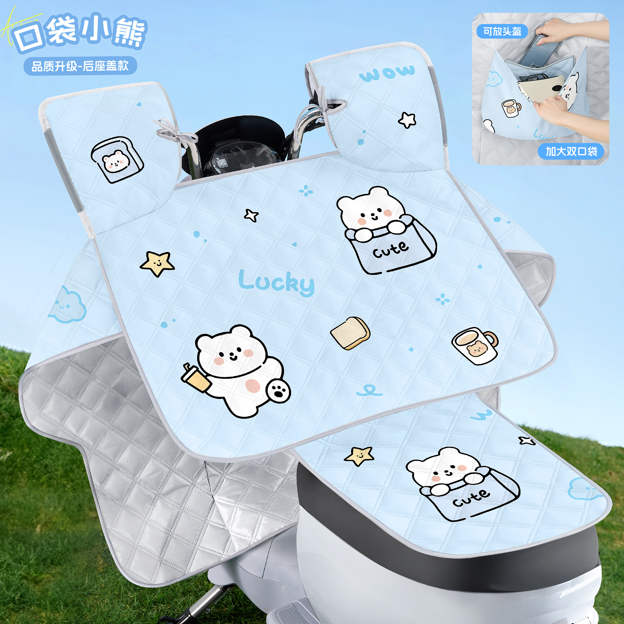 • [탄성 풀랩 쿠션 + 자외선 차단 및 보온] 파란색 배경 스트랩 곰