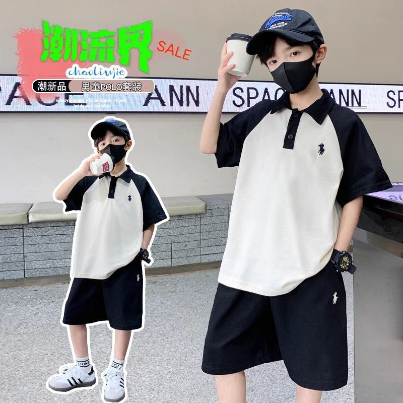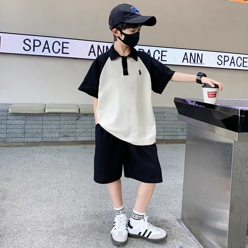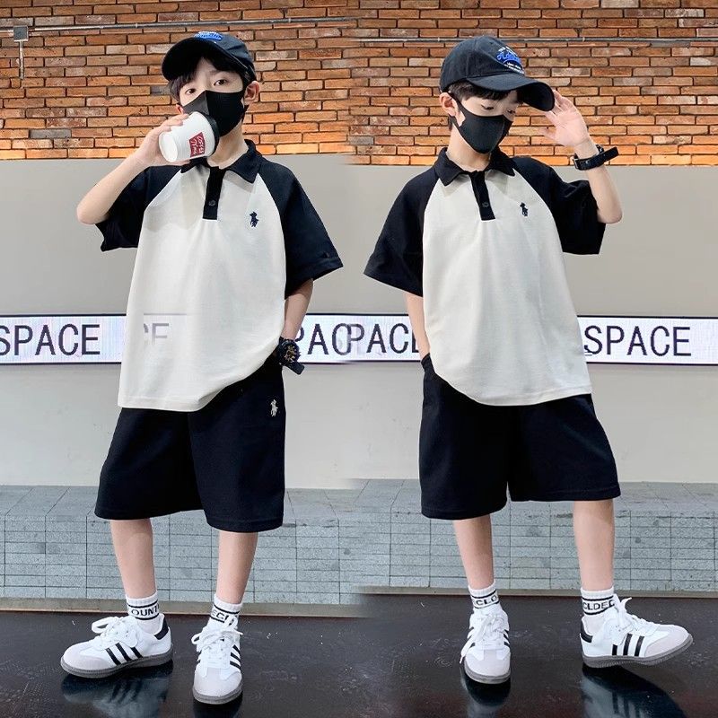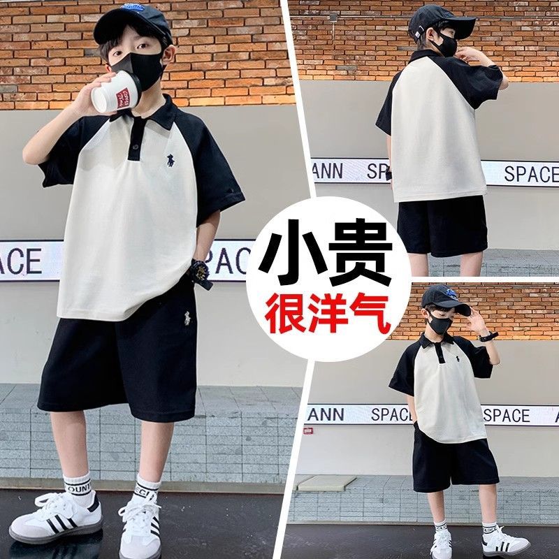 아동용 반팔 잘 생긴 양복 2025 서양식 소년 라글란 폴로 칼라 탑 반바지 여름 캐주얼 투피스 세트스토어 가기