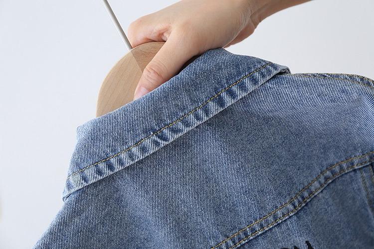새로운 여아 데님 재킷, 여아 의류, 패셔너블한 봄, 가을 의류, 유아 및 어린이 가을 의류스토어 가기