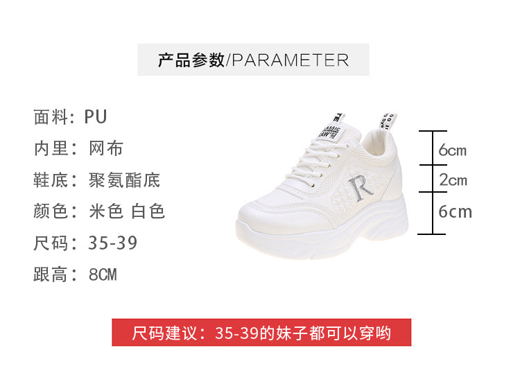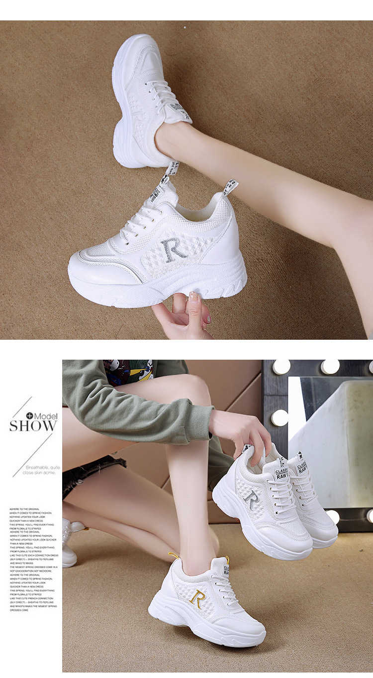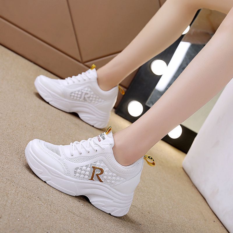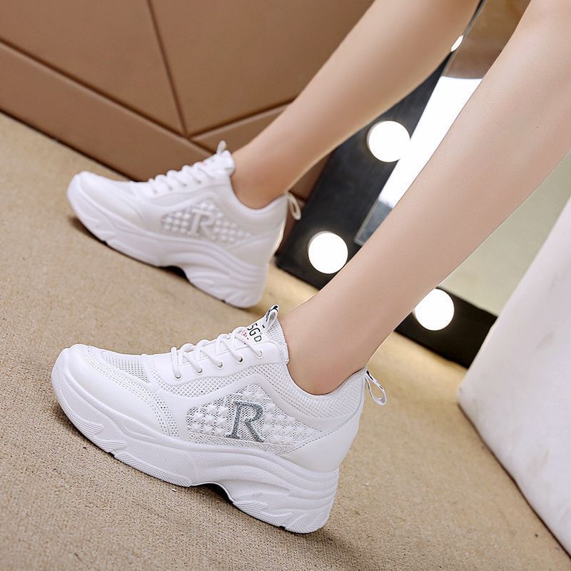 대외 무역 국경 간 여성용 키가 큰 흰색 신발 메쉬 캐주얼 운동화 새로운 플랫폼 두꺼운 밑창 인터넷 연예인 아빠 신발스토어 가기