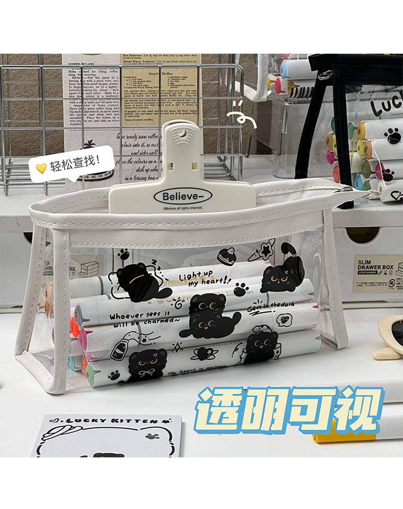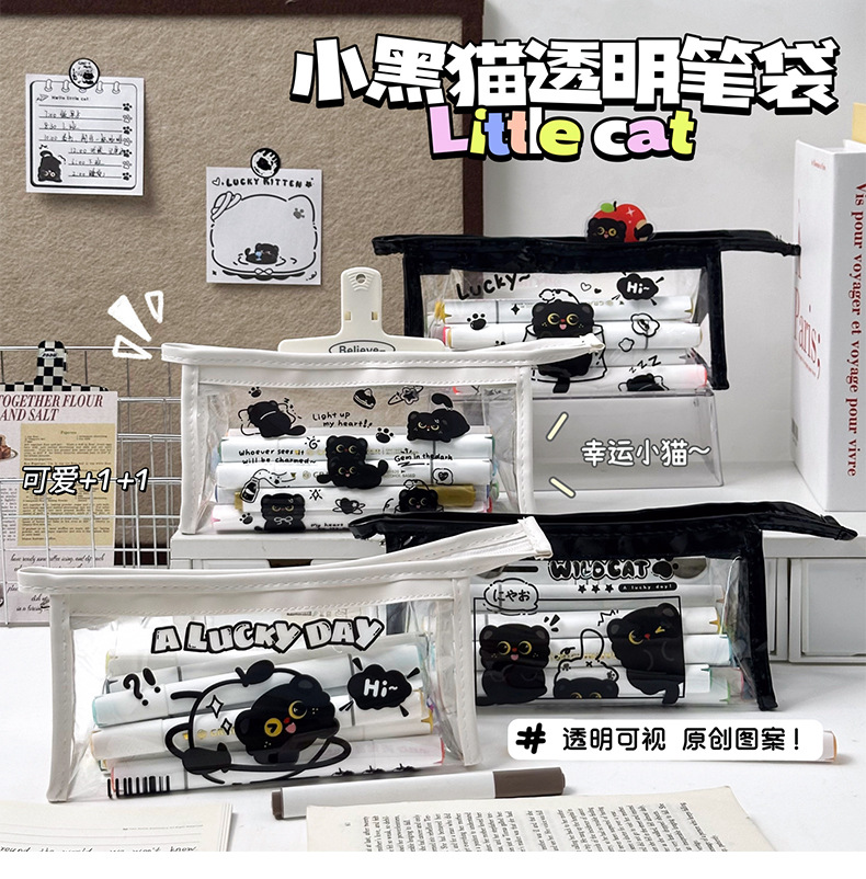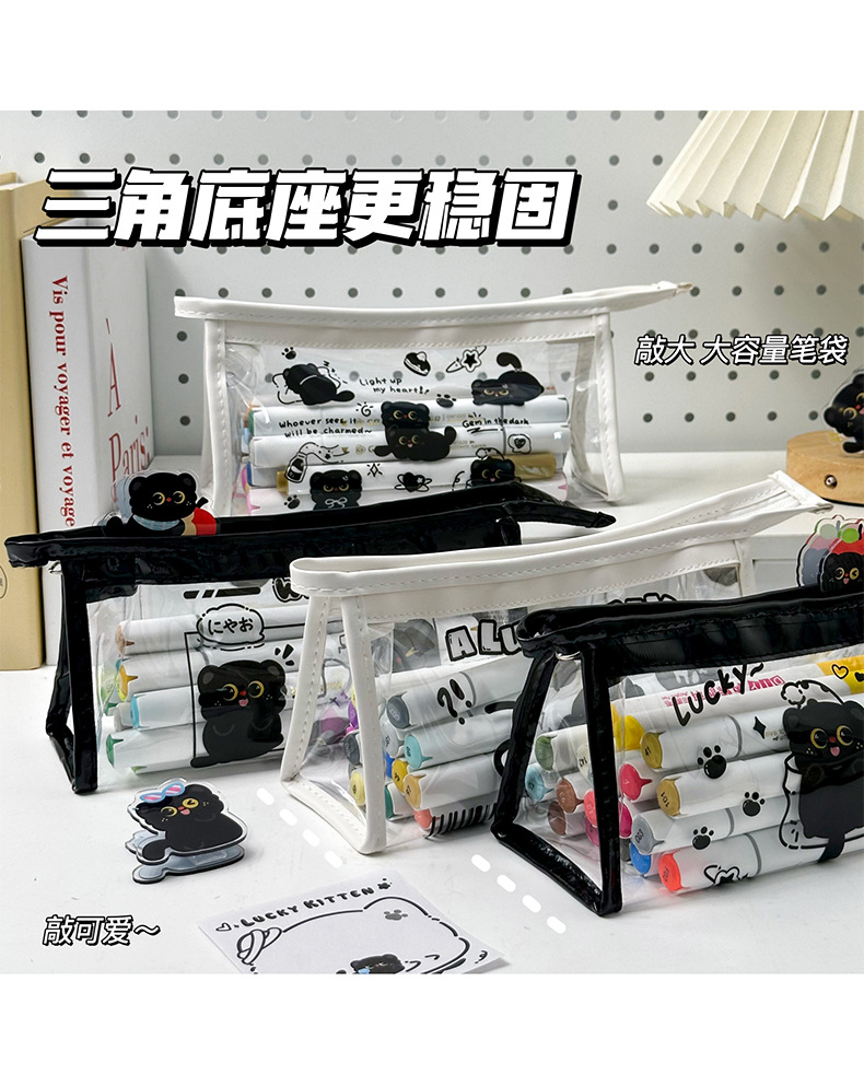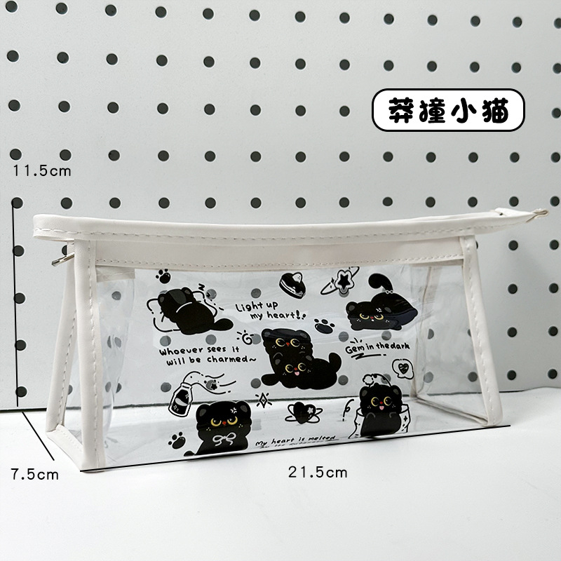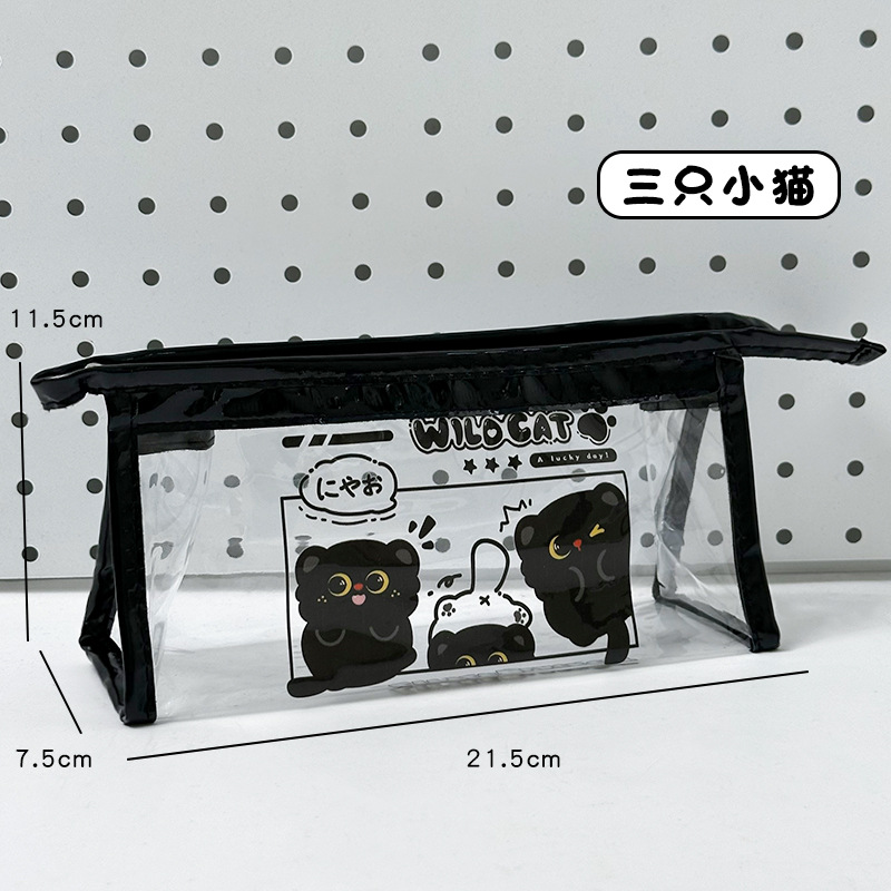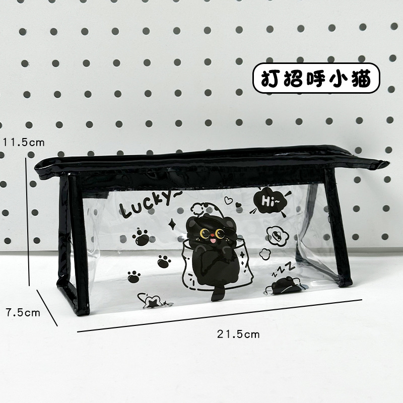 검은 새끼 고양이 투명 연필 가방 대용량 문구 가방 ins 스타일 문구 보관 가방 초등학생 방수 연필 가방