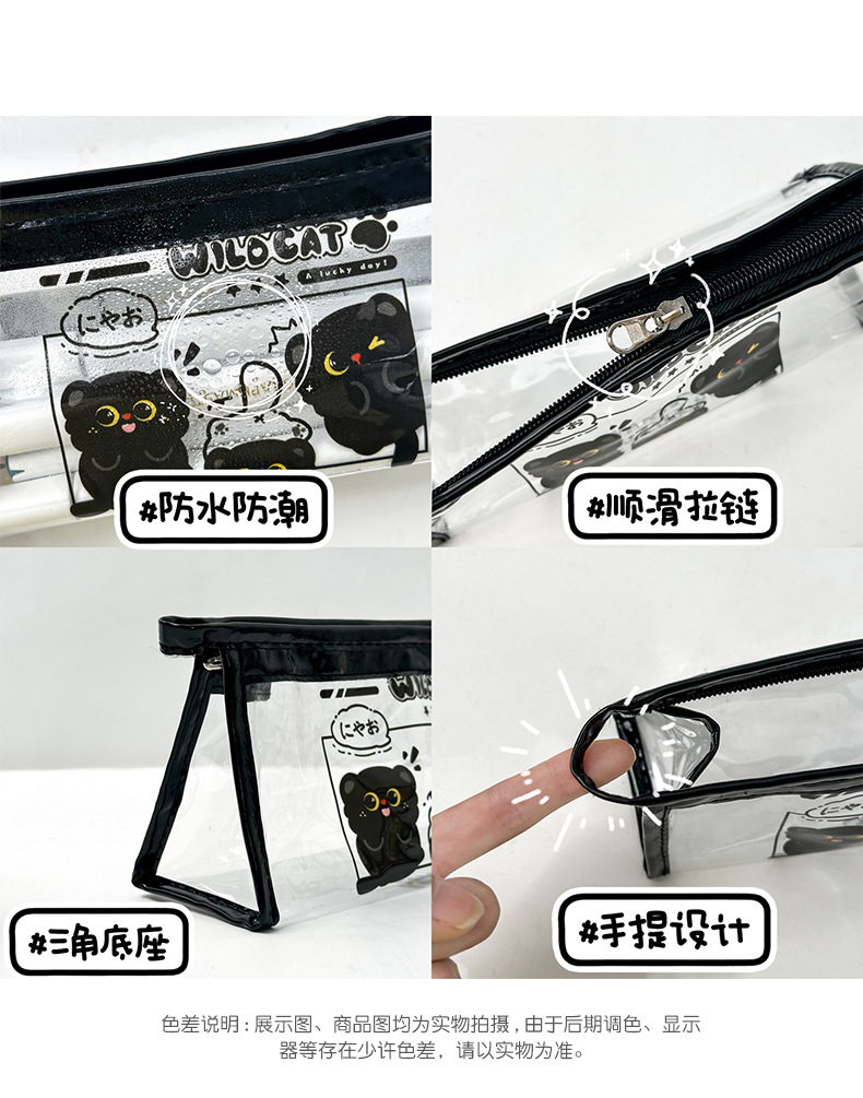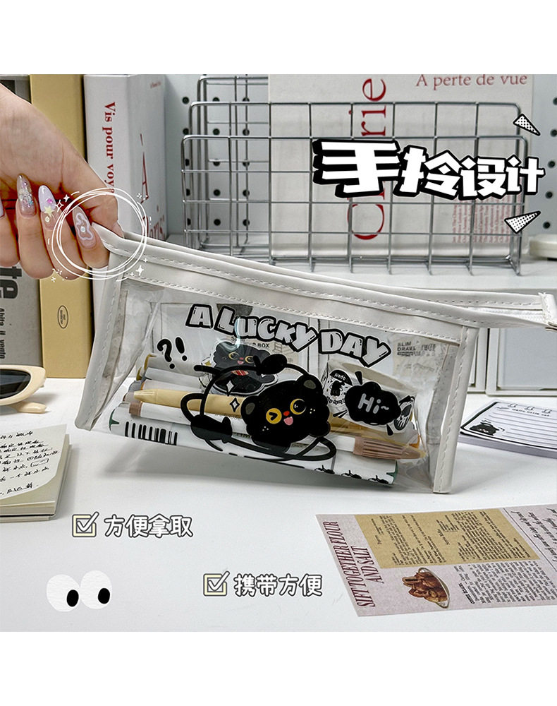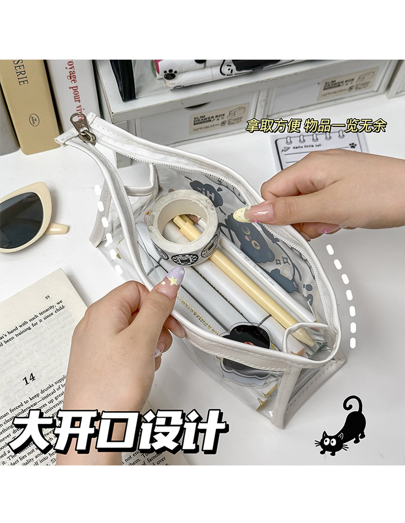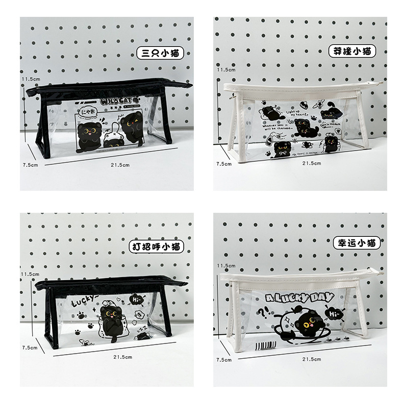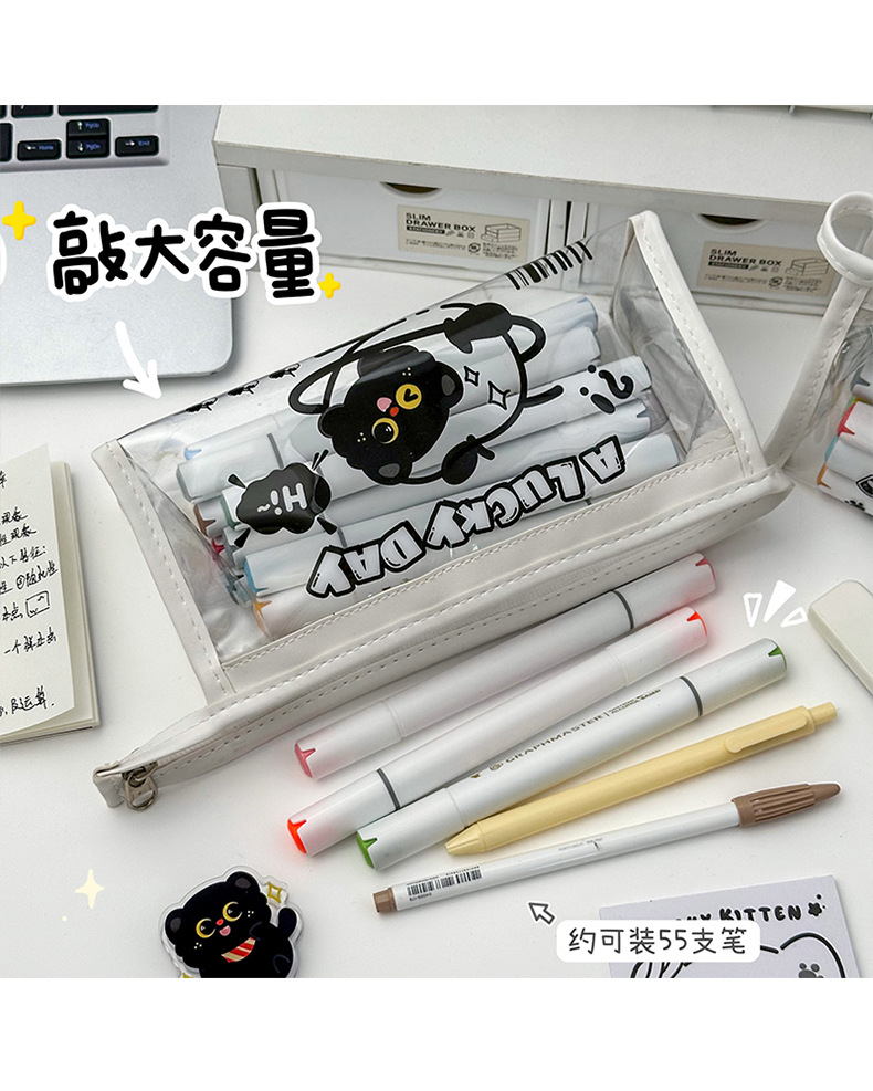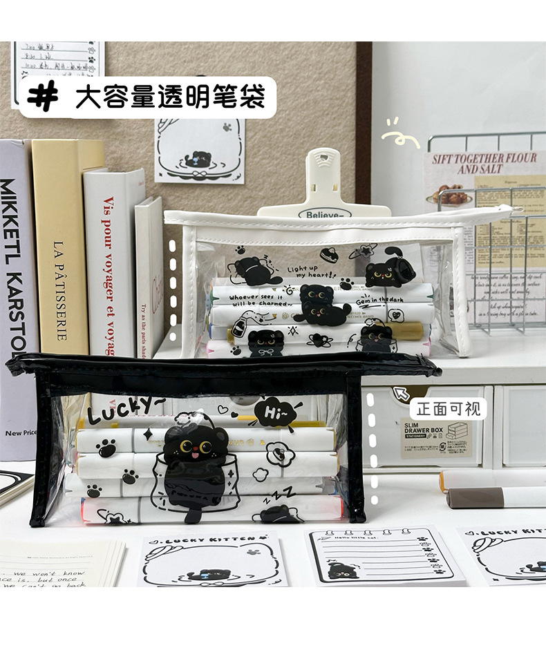 검은 새끼 고양이 투명 연필 가방 대용량 문구 가방 ins 스타일 문구 보관 가방 초등학생 방수 연필 가방