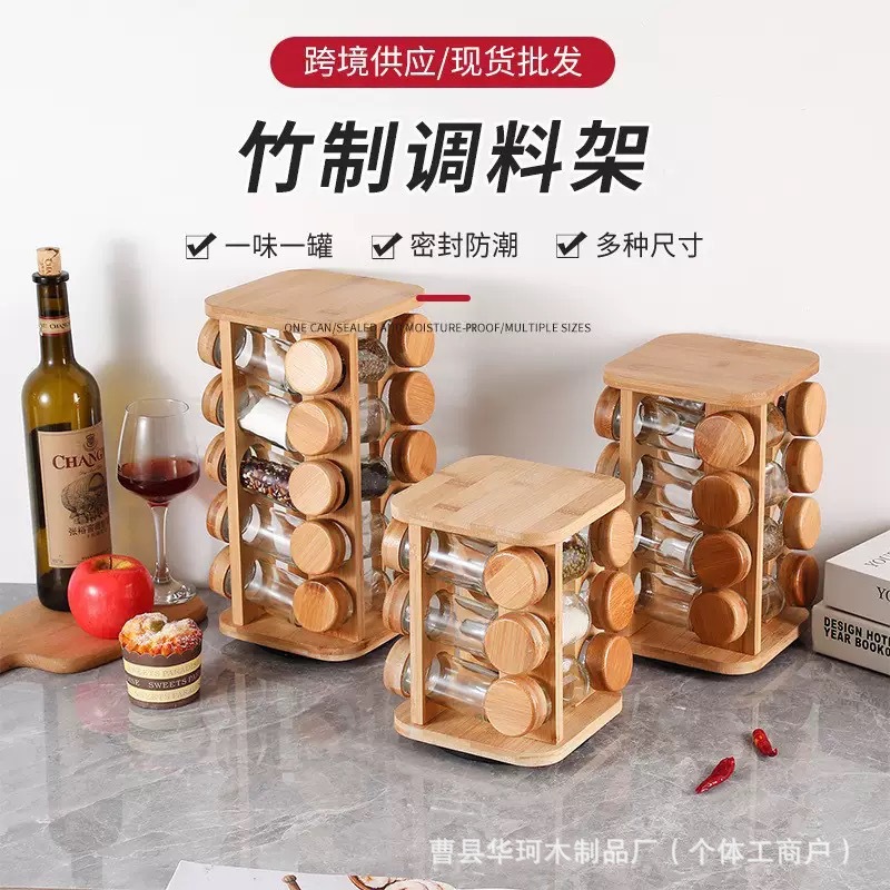 국경 간 대나무 조미료 병 보관 랙 주방 다층 조미료 보관 랙 분할 향신료 회전 디스플레이 랙스토어 가기
