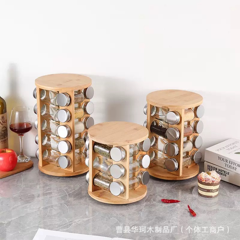 국경 간 대나무 조미료 병 보관 랙 주방 다층 조미료 보관 랙 분할 향신료 회전 디스플레이 랙