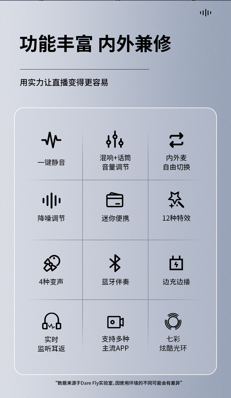 새로운 미니 라이브 방송 사운드 카드 세트는 원격 제어 음향 혼합, 블루투스 반주, 이어폰 마이크를 지원합니다.