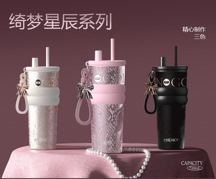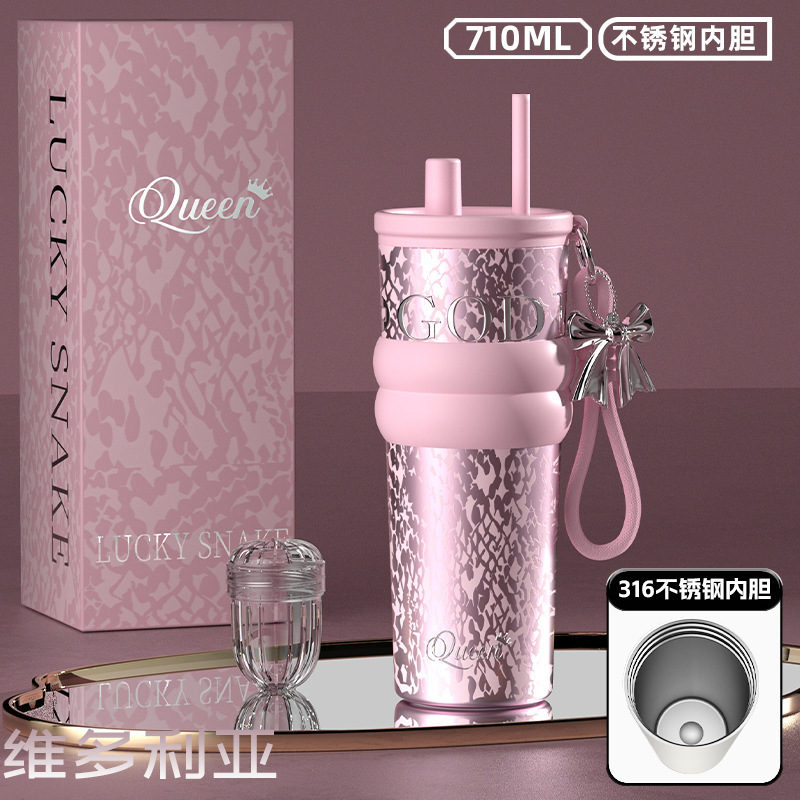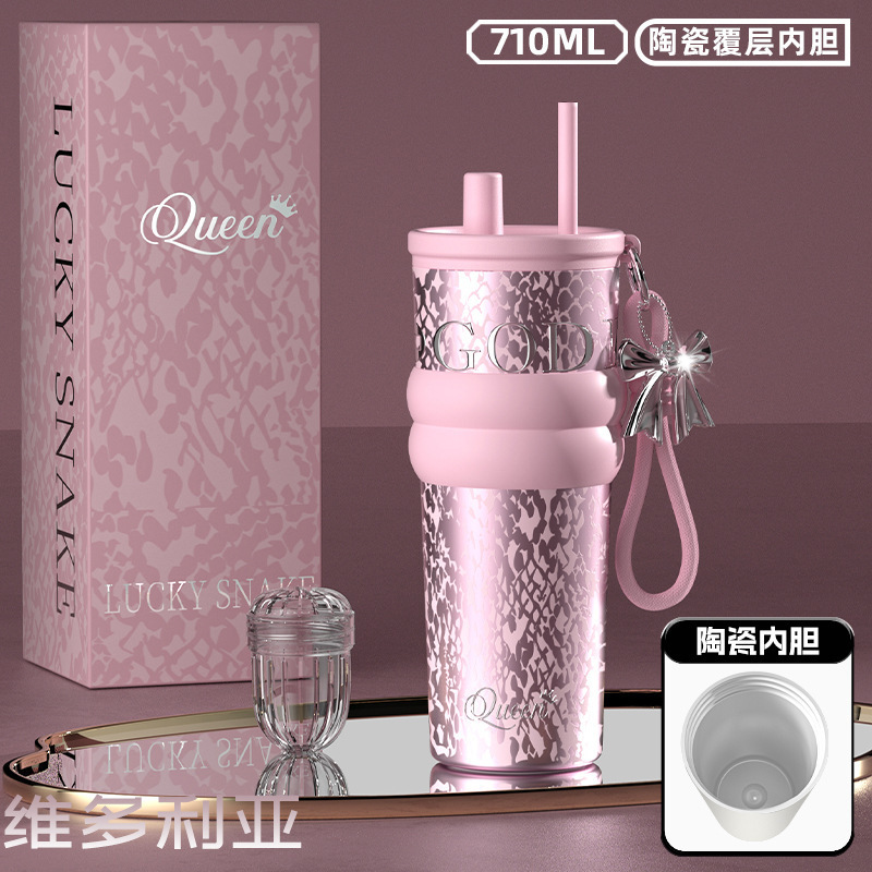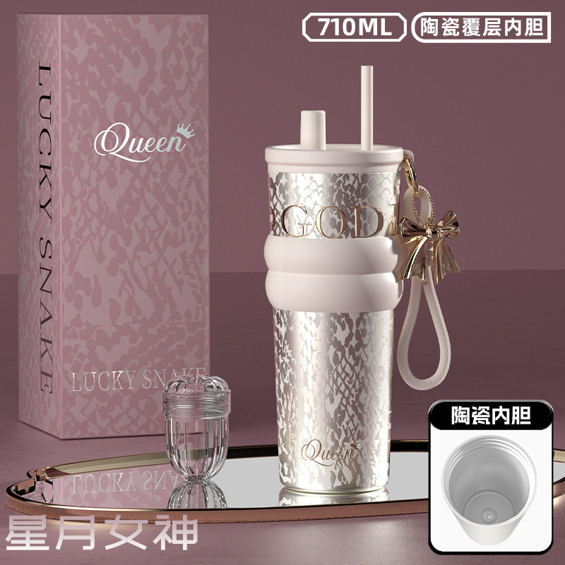 316 스테인레스 스틸 워터 컵 여성용 보온병 컵 고급스러운 밀짚 세라믹 라이너 아이스 컵 생일 선물 선물 상자 포함