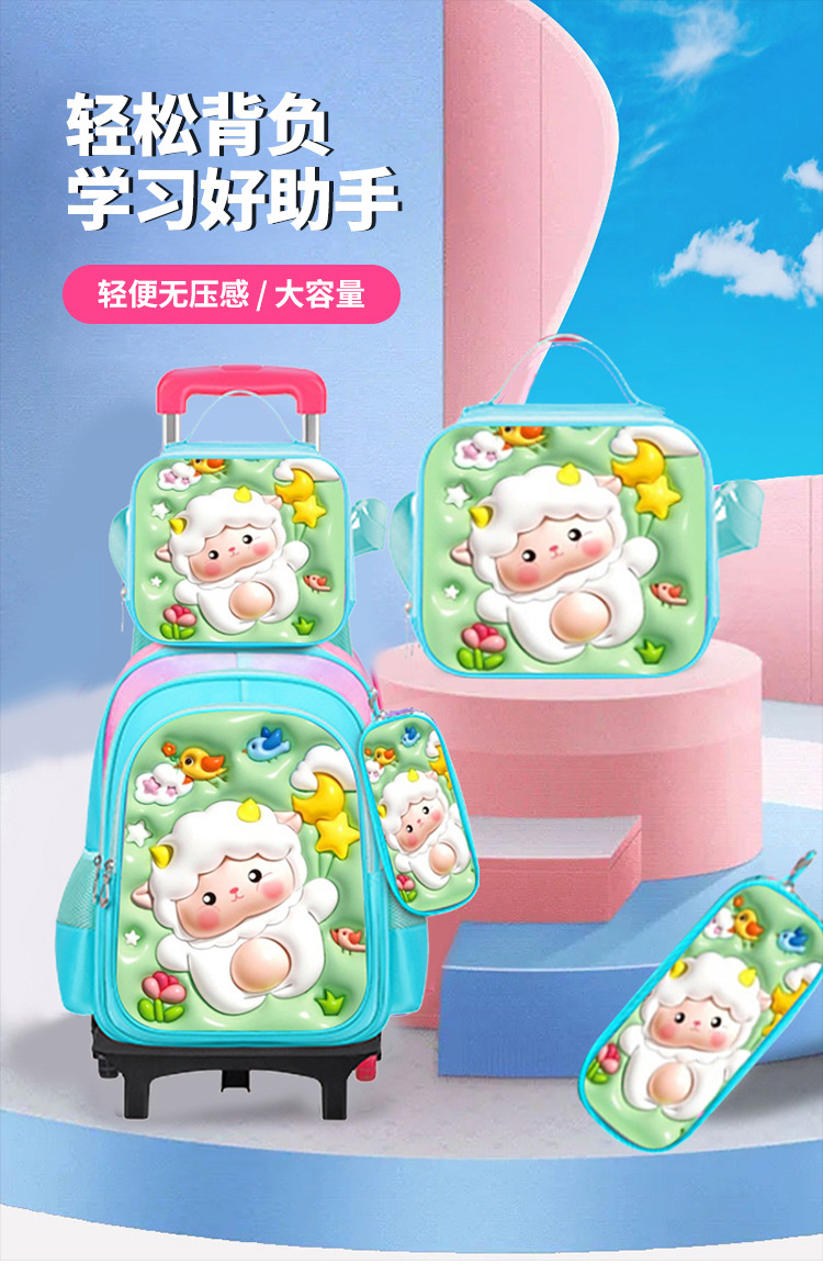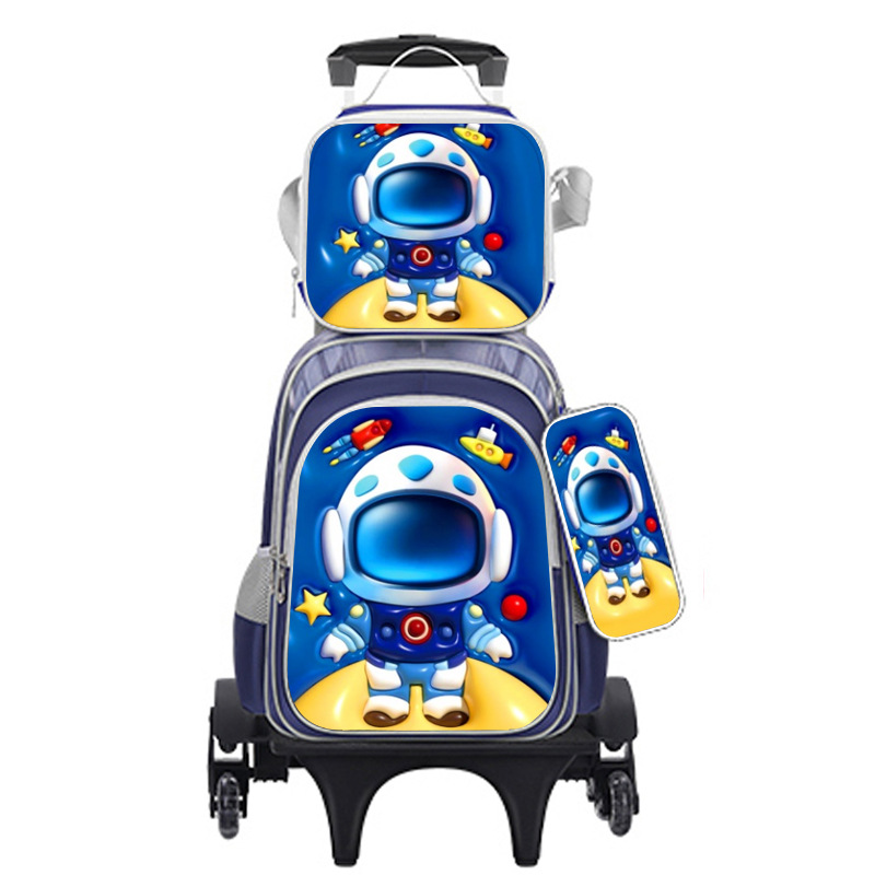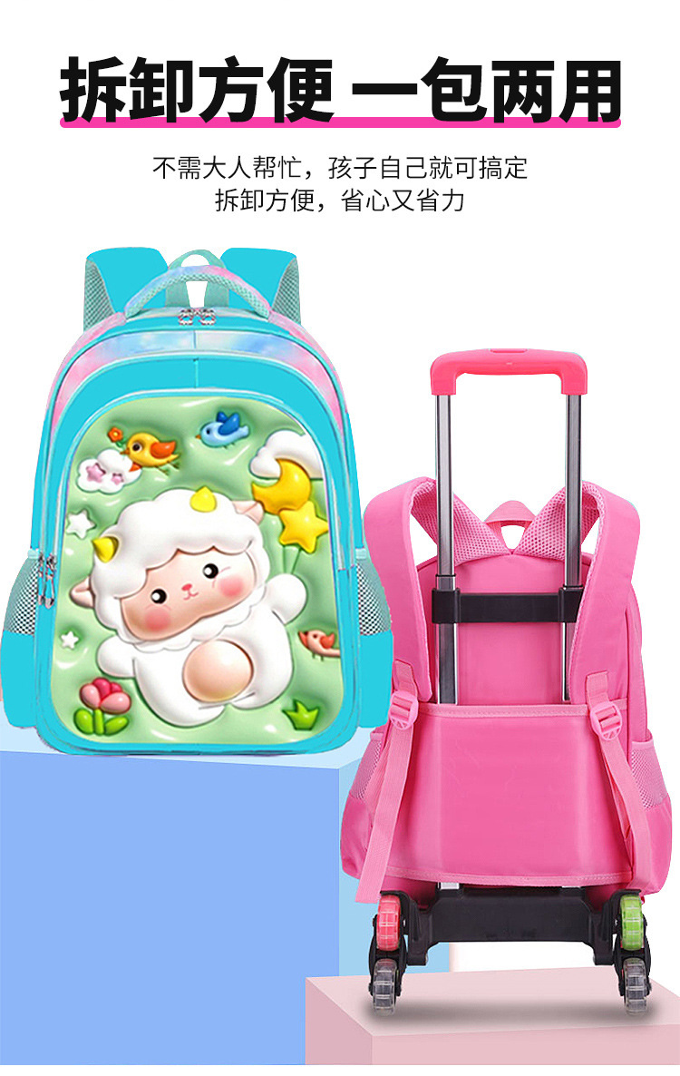 이중 바퀴가 달린 초등학생 책가방, 광택 가죽 3종 세트, 어린이용 배낭, 3학년 부담 경감 책가방