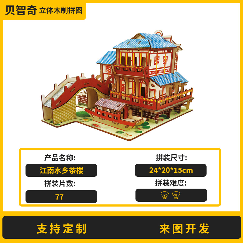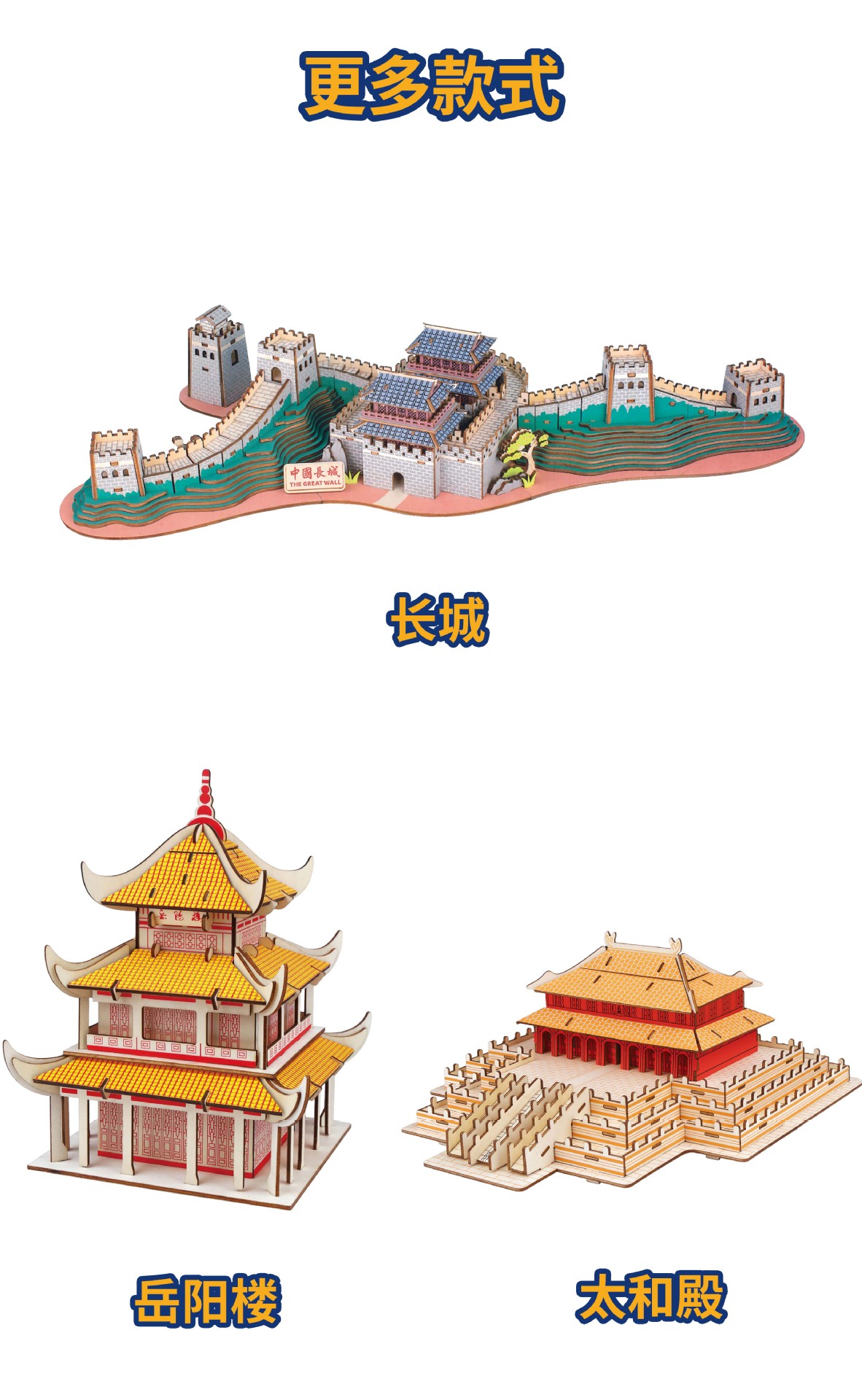 입체 퍼즐 골동품 3D 모델 건물 조립 나무 어린이 교육 집 장난감 빌딩 블록 천단 모양스토어 가기