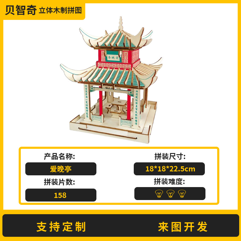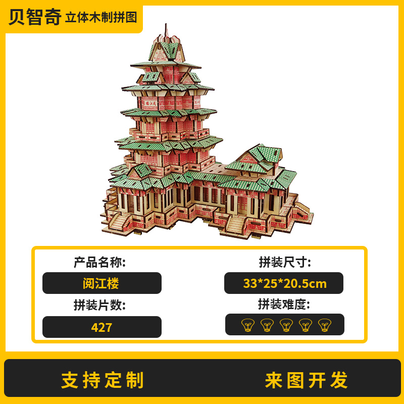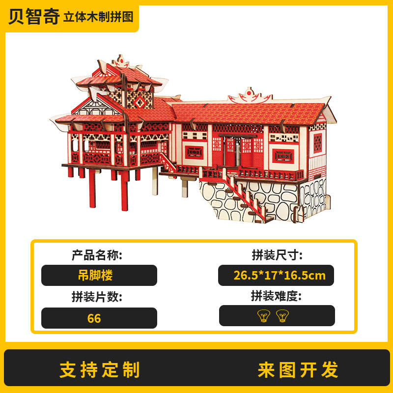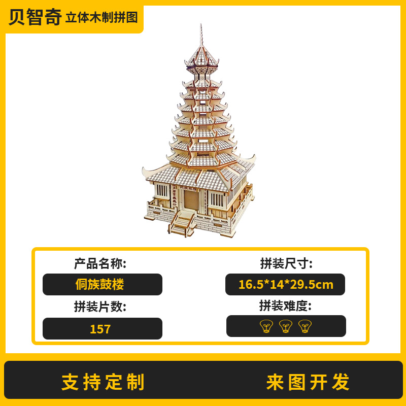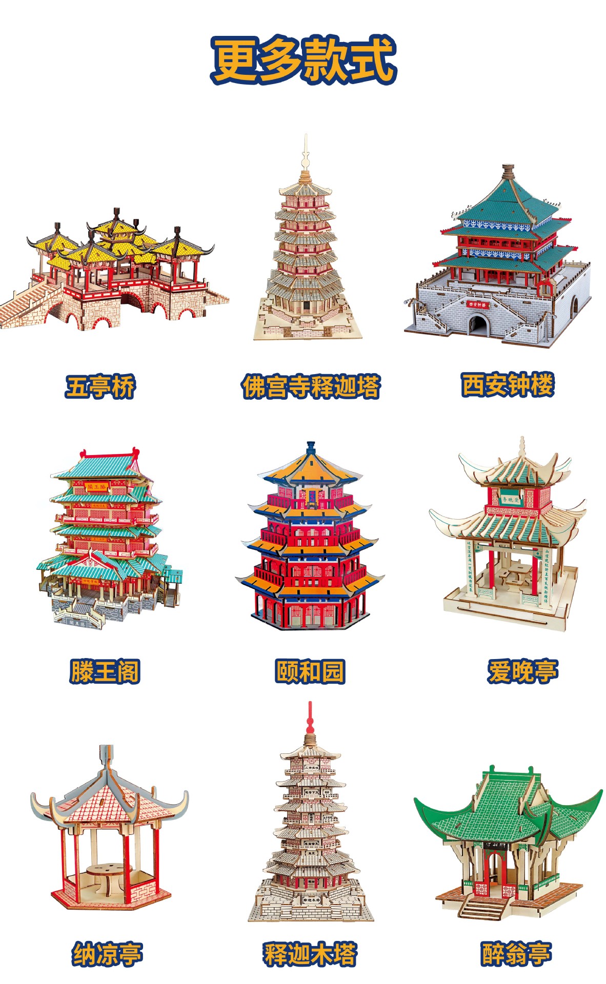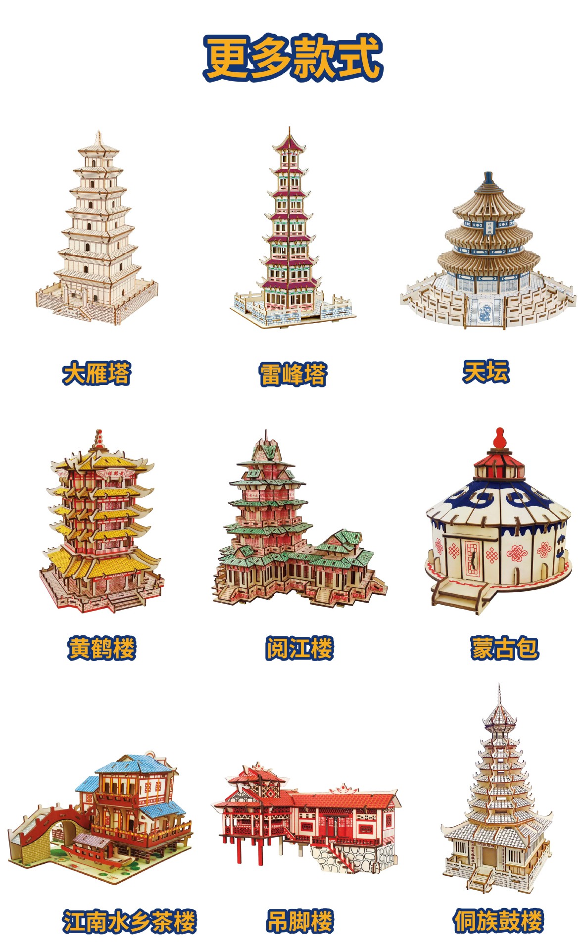 입체 퍼즐 골동품 3D 모델 건물 조립 나무 어린이 교육 집 장난감 빌딩 블록 천단 모양