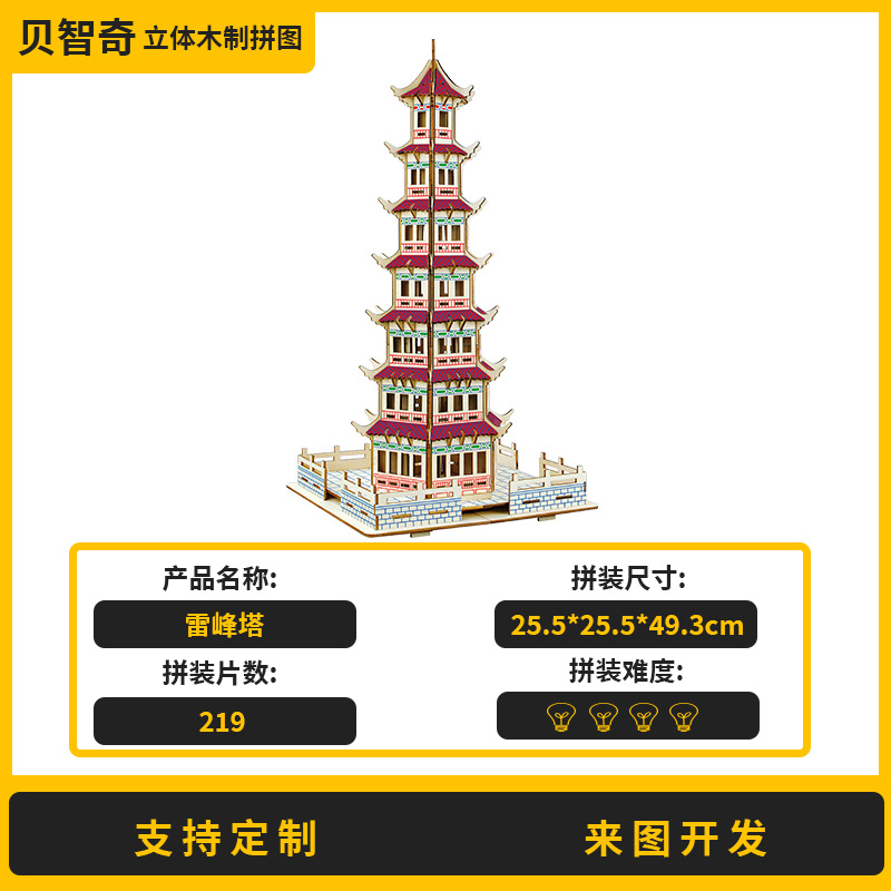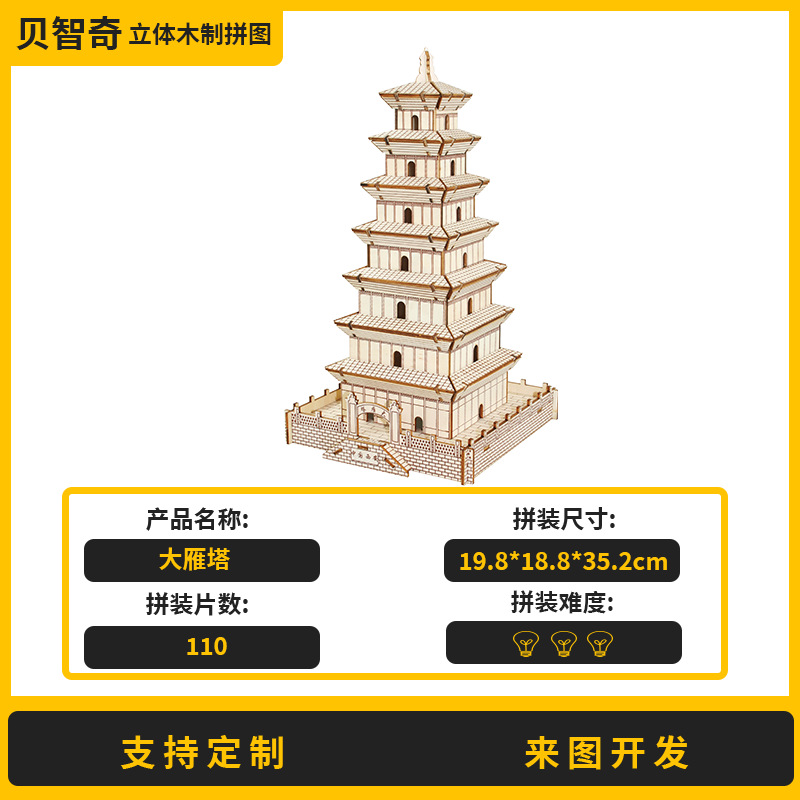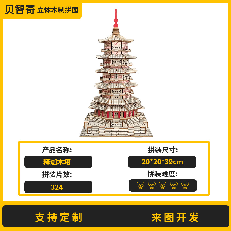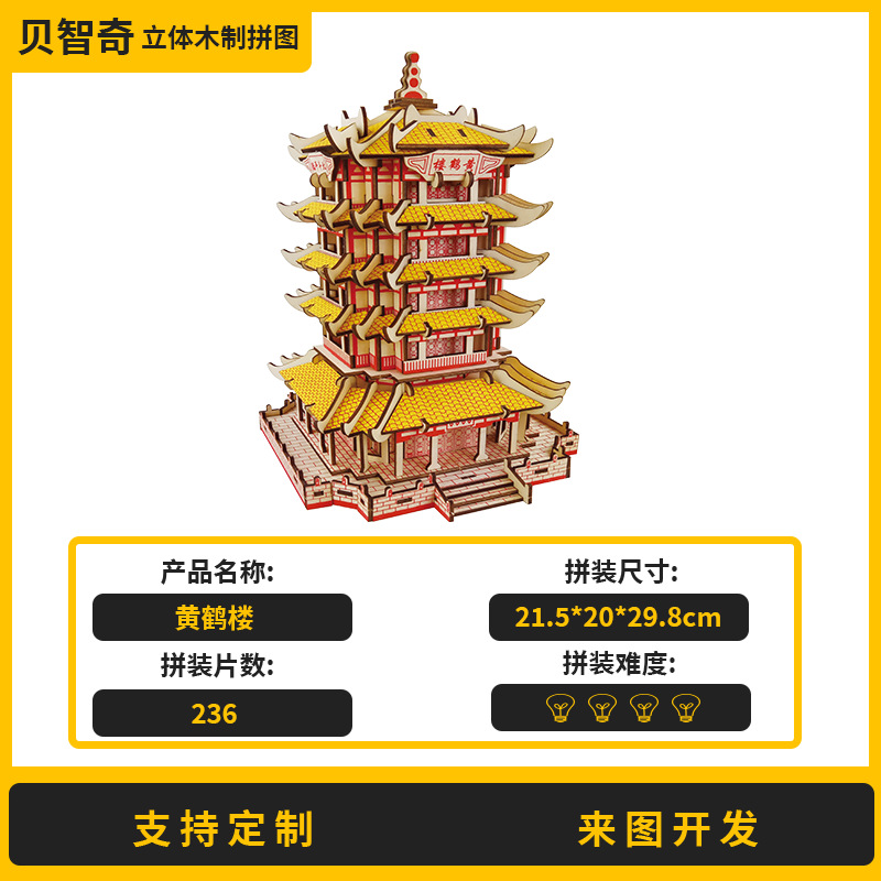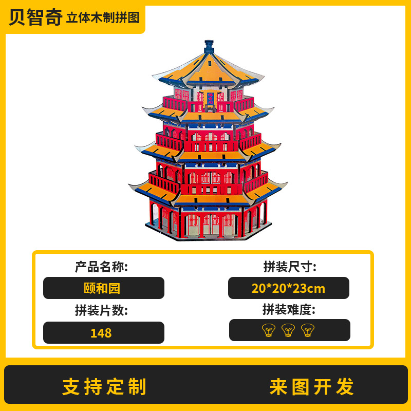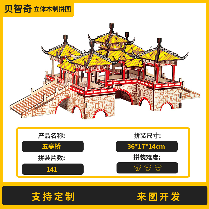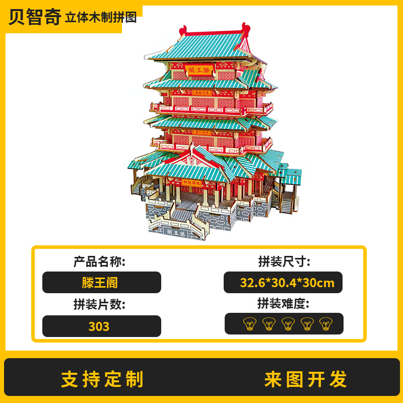 입체 퍼즐 골동품 3D 모델 건물 조립 나무 어린이 교육 집 장난감 빌딩 블록 천단 모양