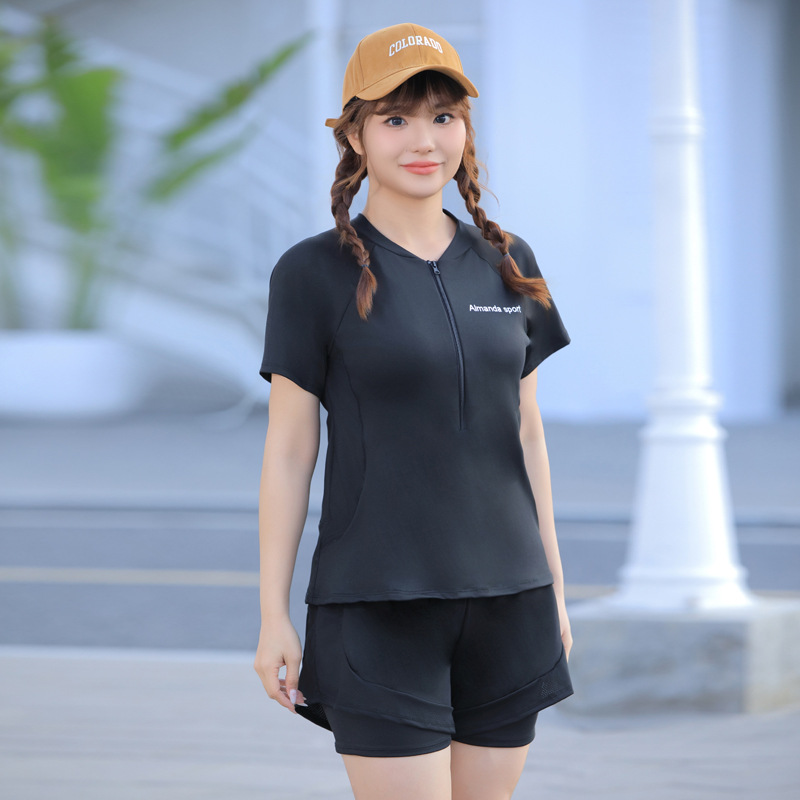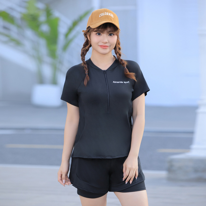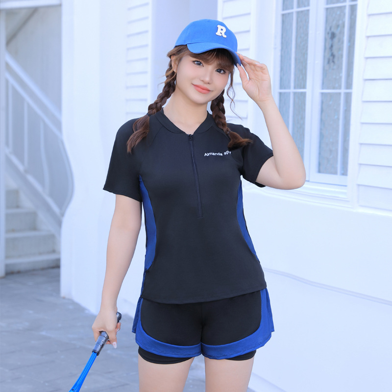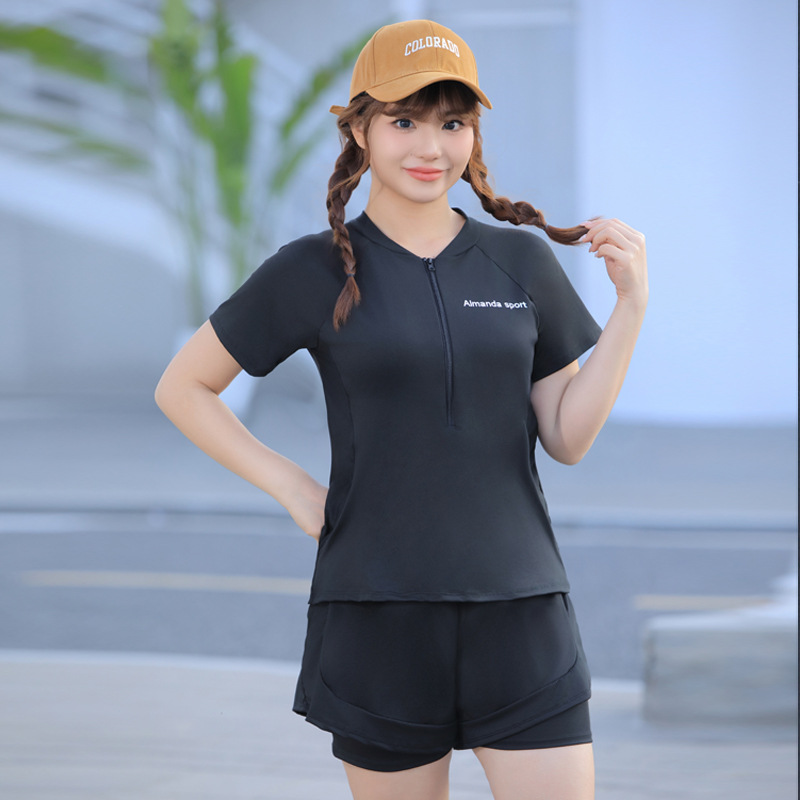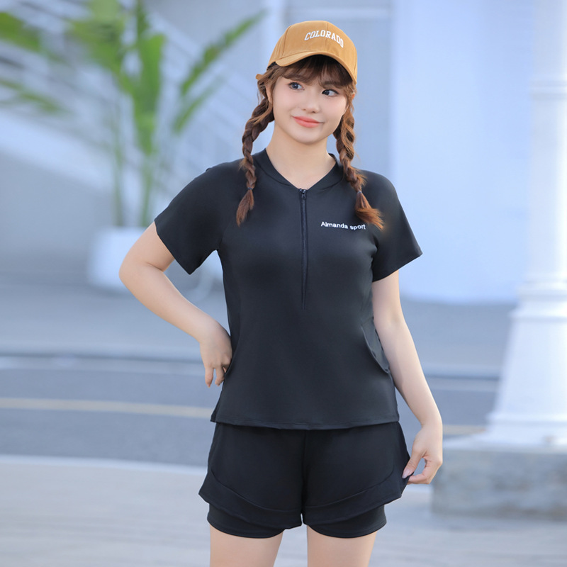여성용 신형 스포츠 플러스 사이즈 수영복, 보수적인 배 커버, 슬리밍, 보수적인 복서 스플릿 학생 뚱뚱한 mm 살 커버 수영복스토어 가기