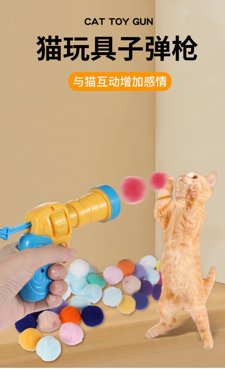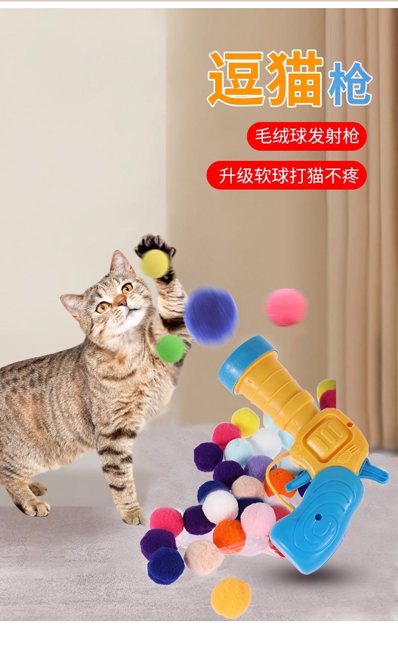 플러시 볼 발사기, 조용하고 다채로운 고탄성 헤어 볼, 고양이 대화형 자체 자극 헤어 볼 건, 고양이 유혹 도구 도매스토어 가기
