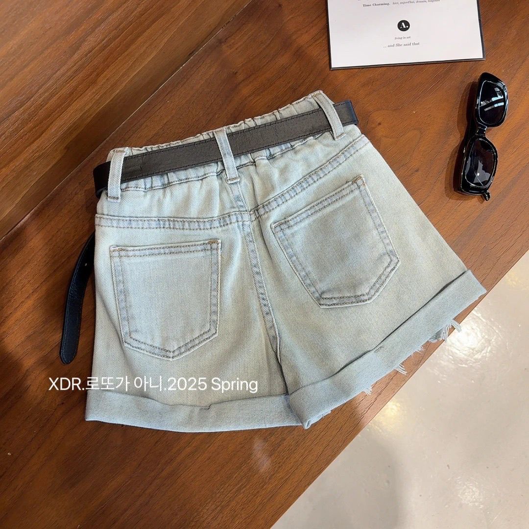 • 다이아몬드 밑단 데님 반바지(벨트는 포함되어 있지 않음)